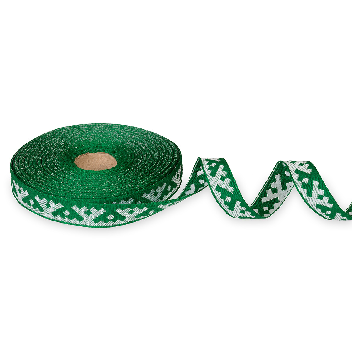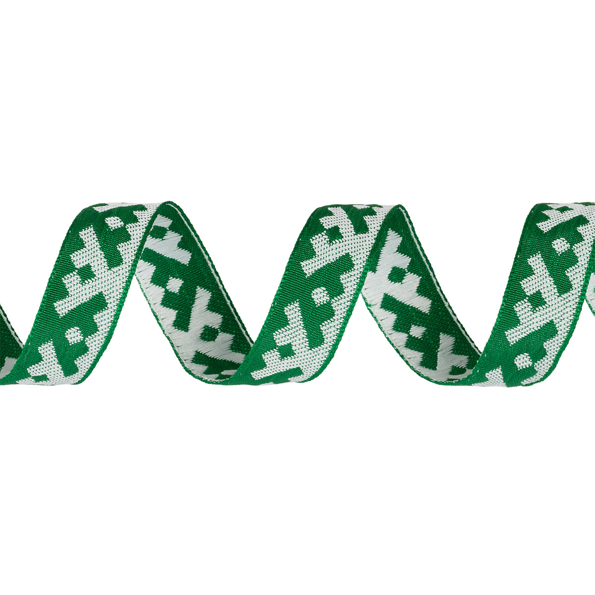 Лента (тесьма) жаккардовая 18.0 мм / 25±1 метров, Орнамент для северных народов, рис 6753 зеленый-белый, Gamma С3771