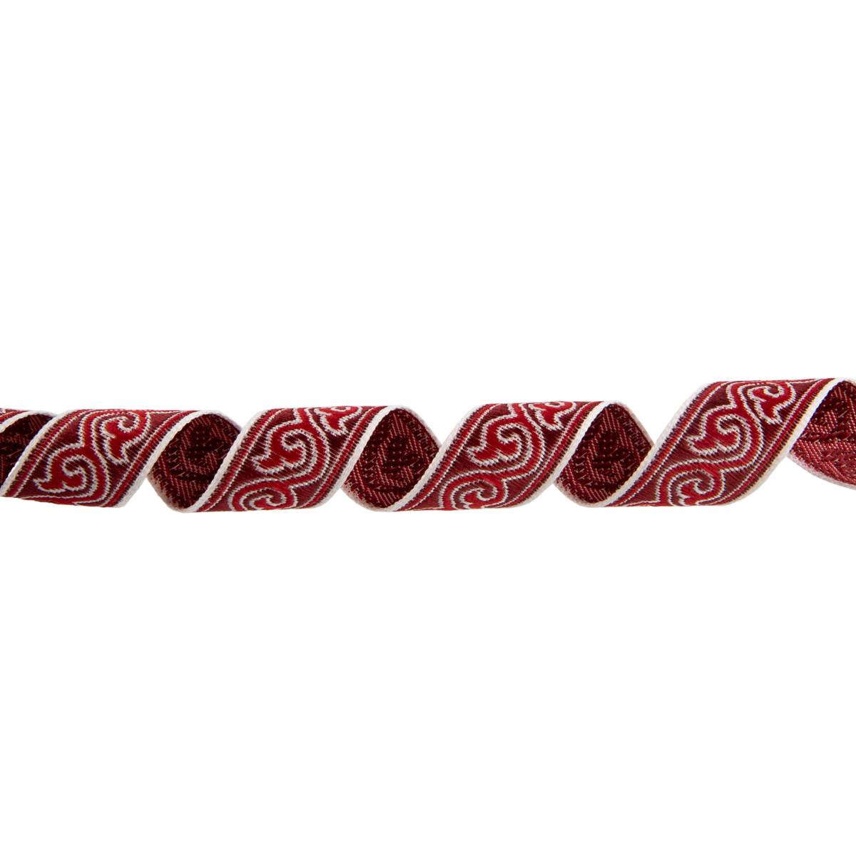 Лента (тесьма) жаккардовая 18.0 мм / 25 метров, Орнамент для северных народов, рис 9594 белый/бордовый/красный (№3), Gamma С3771