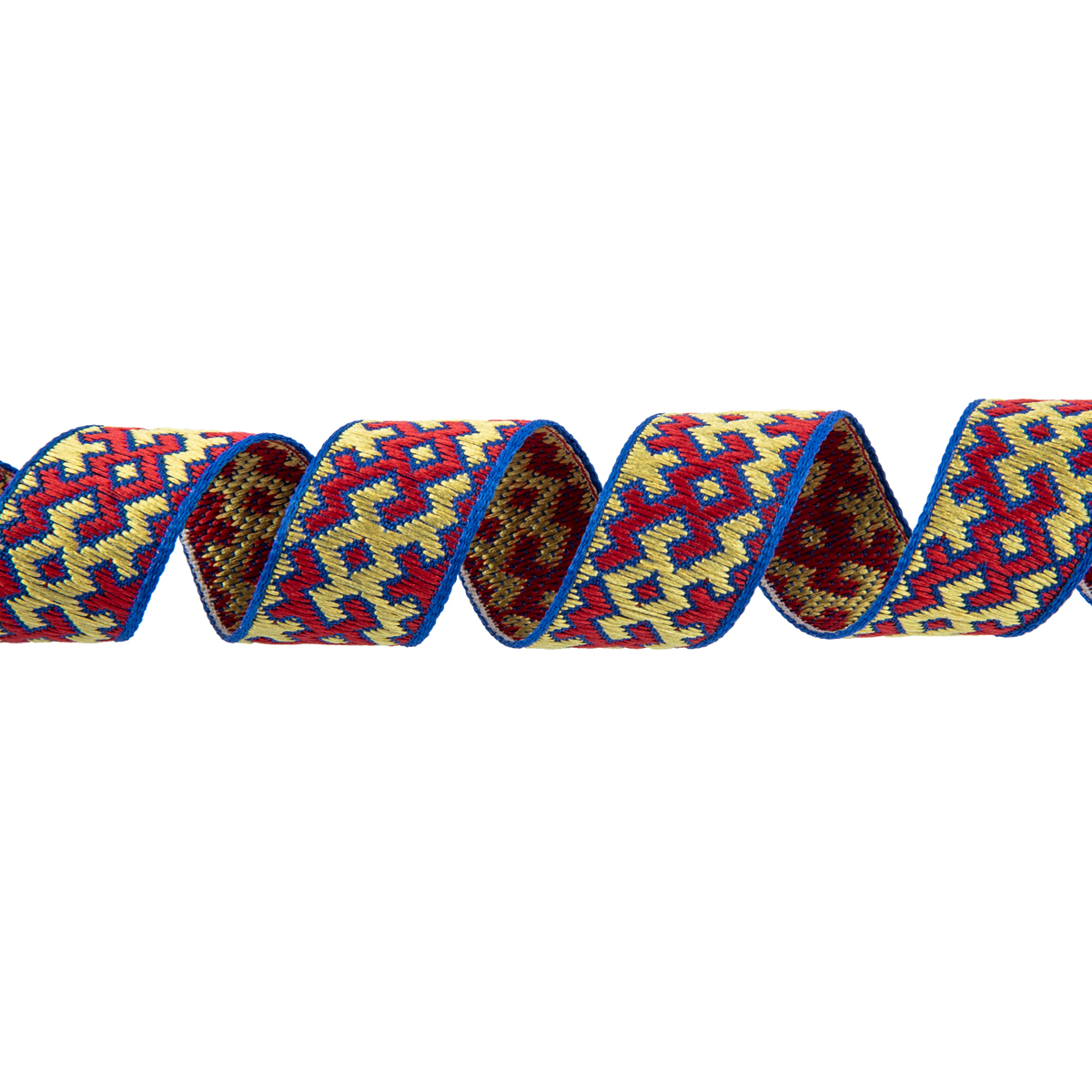 Лента (тесьма) жаккардовая 18.0 мм / 25 метров, Орнамент для северных народов, рис 9692 синий/желтый/красный (№10), Gamma С3771