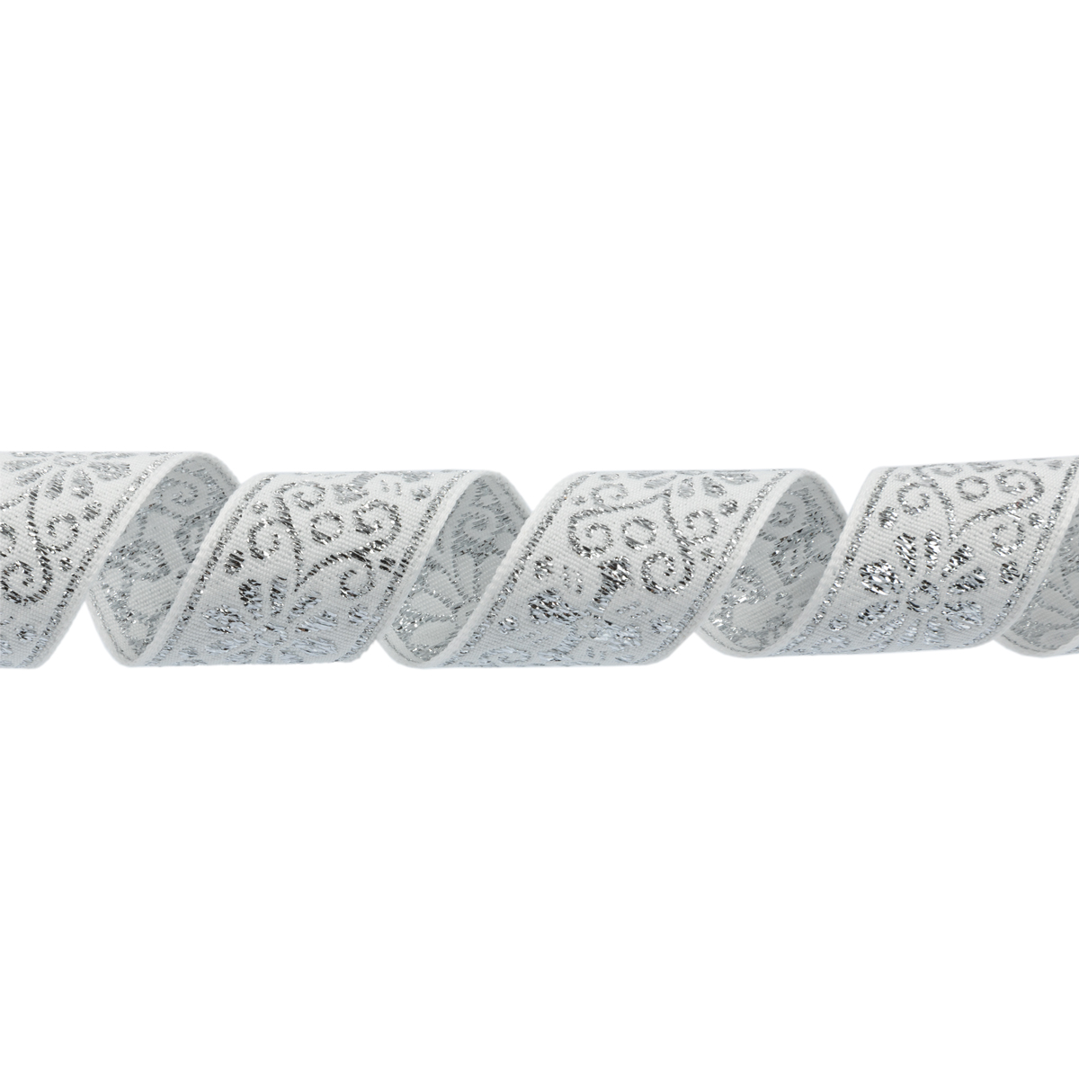 Лента (тесьма) жаккардовая 23.0-25.0 мм, / 25 метров, белый/под серебро, Blitz