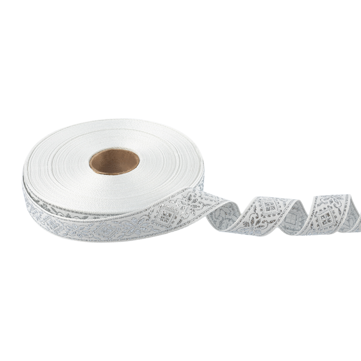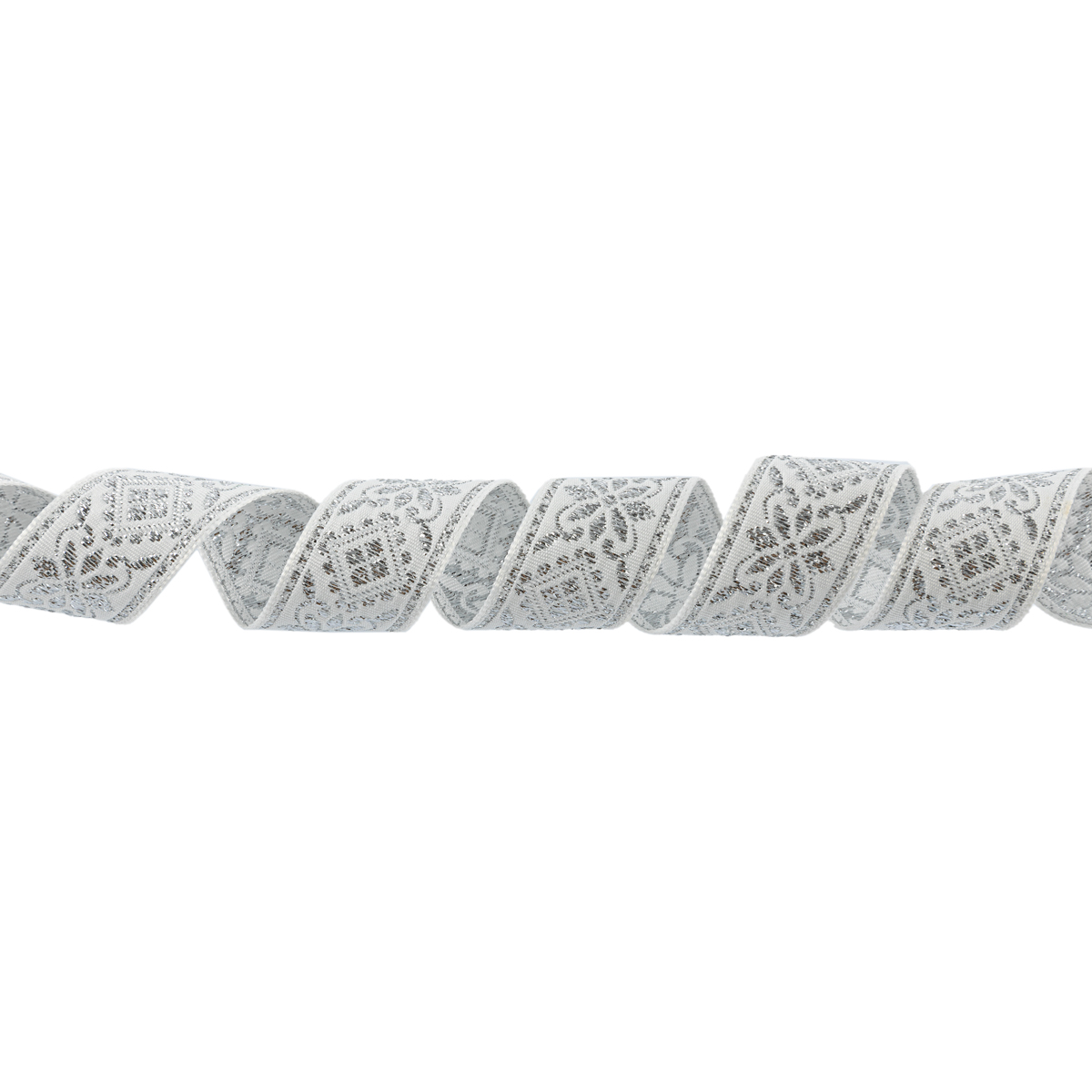 Лента (тесьма) жаккардовая 23.0-25.0 мм, / 25 метров, белый/под серебро, Blitz