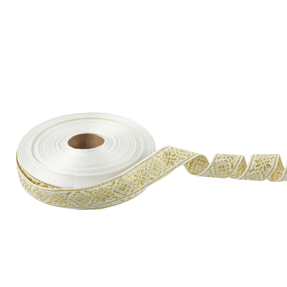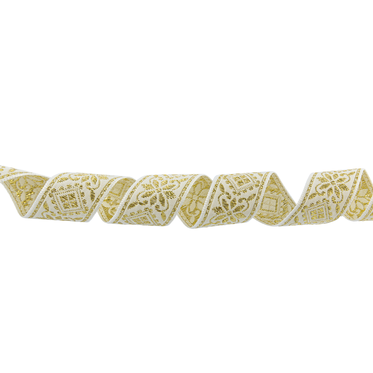 Лента (тесьма) жаккардовая 23.0-25.0 мм, / 25 метров, белый/под золото, Blitz