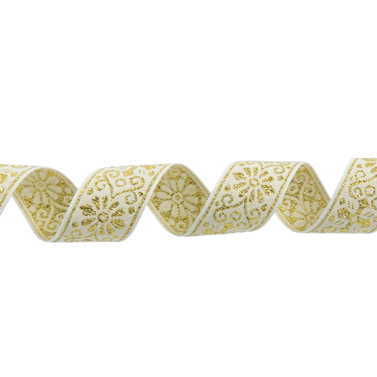 Лента (тесьма) жаккардовая 23.0-25.0 мм, / 25 метров, белый/под золото, Blitz