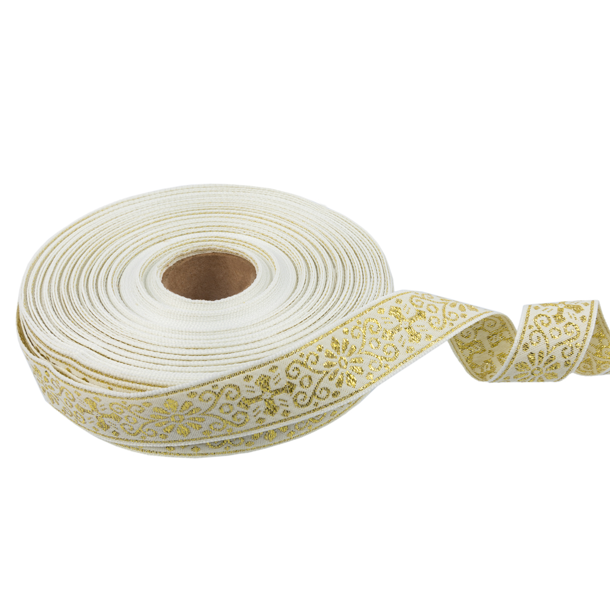 Лента (тесьма) жаккардовая 23.0-25.0 мм, / 25 метров, белый/под золото, Blitz