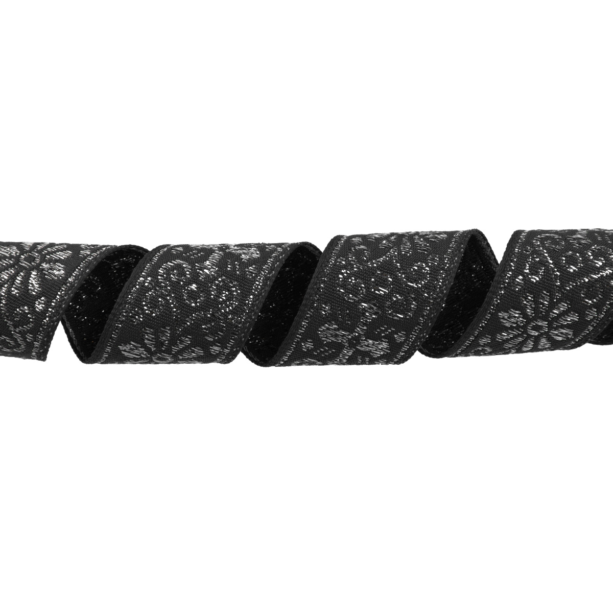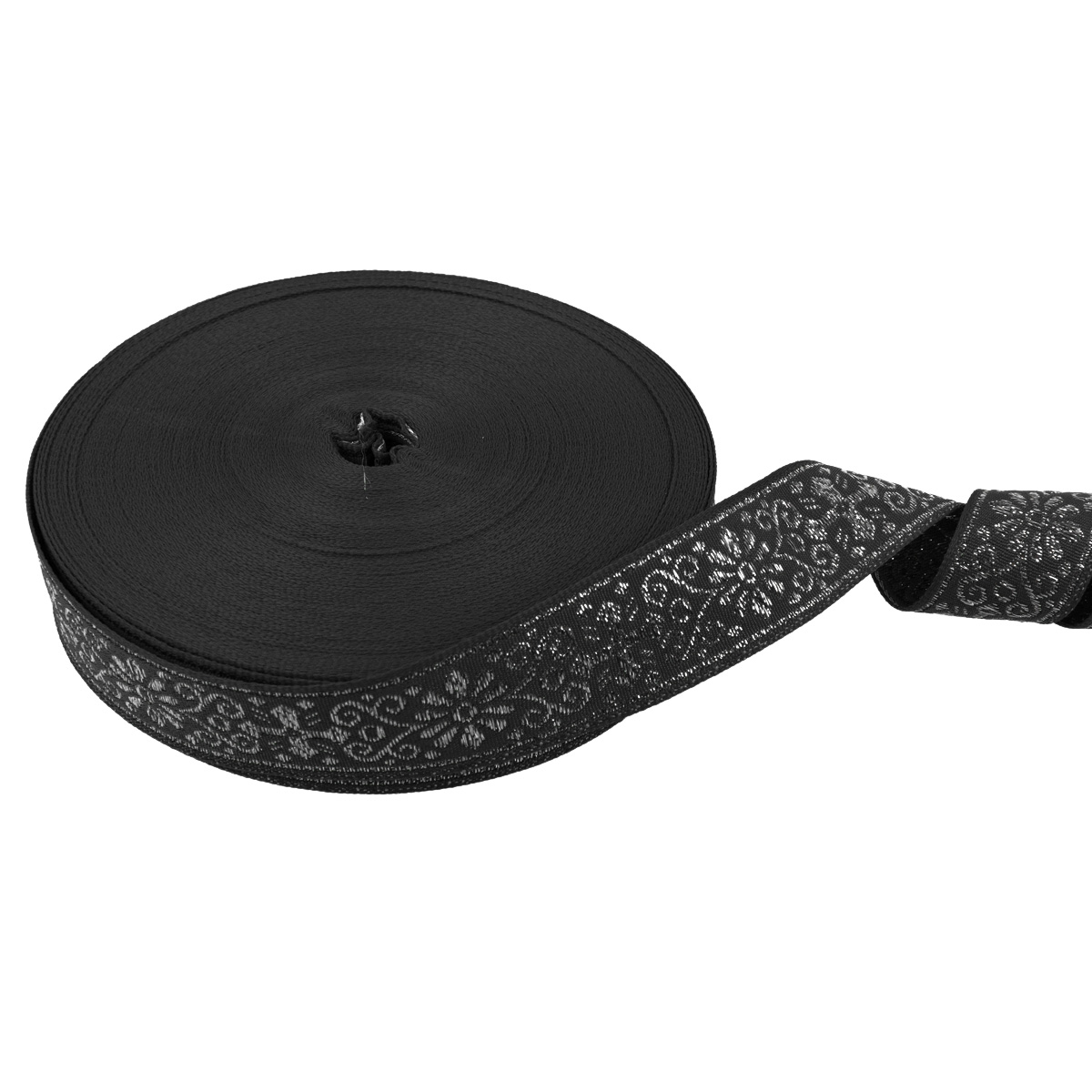 Лента (тесьма) жаккардовая 23.0-25.0 мм / 25 метров, черный/под серебро, Blitz