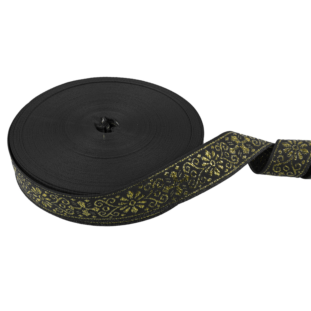Лента (тесьма) жаккардовая 23.0-25.0 мм / 25 метров, черный/под золото, Blitz