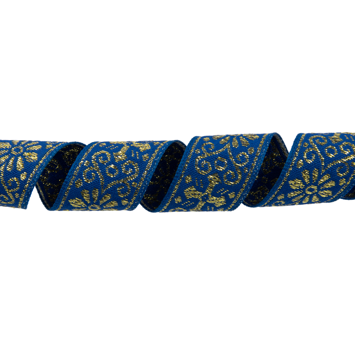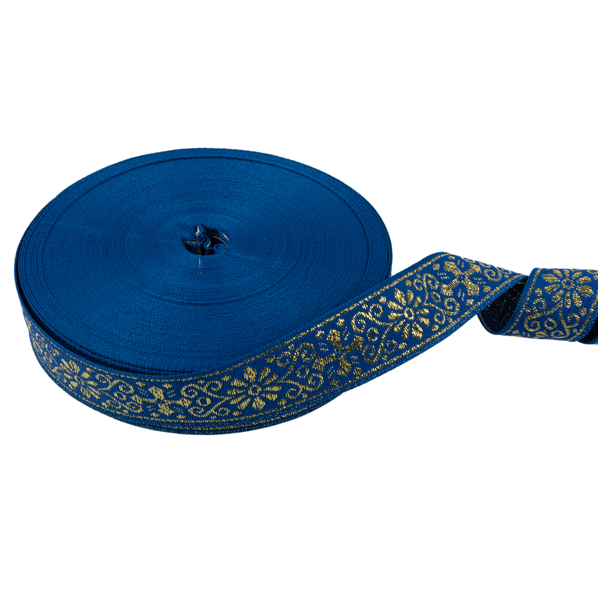 Лента (тесьма) жаккардовая 23.0-25.0 мм / 25 метров, синий/под золото, Blitz