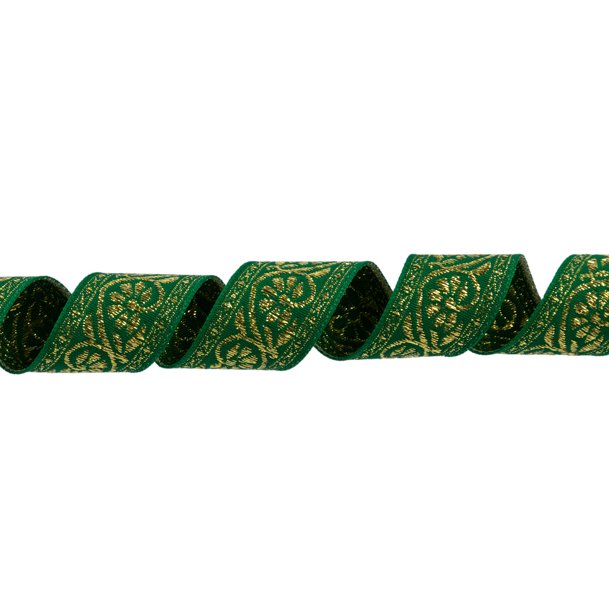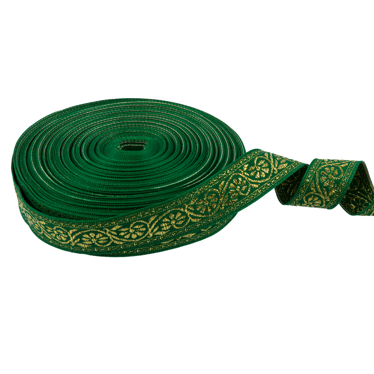 Лента (тесьма) жаккардовая 23.0-25.0 мм / 25 метров, зеленый /под золото, Blitz