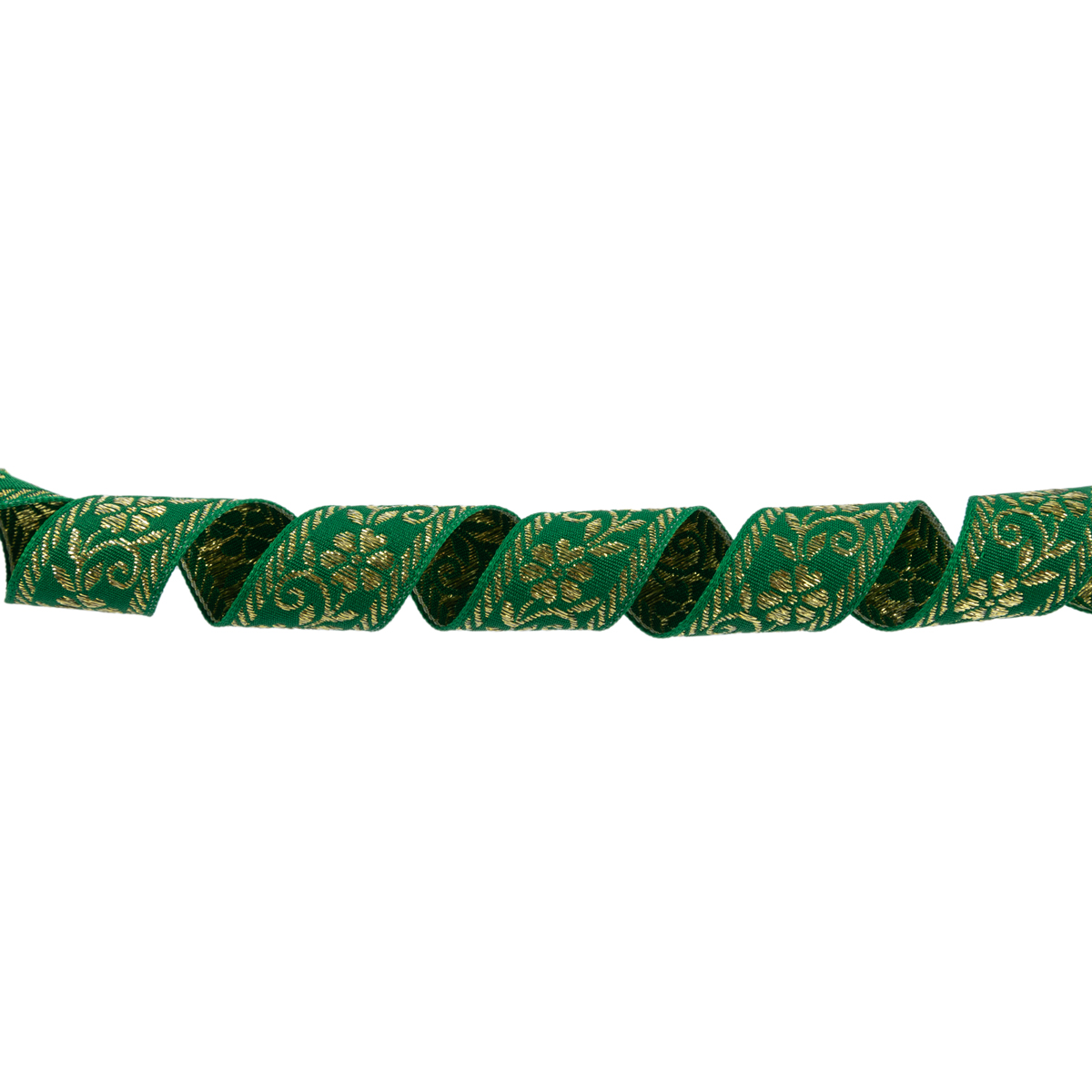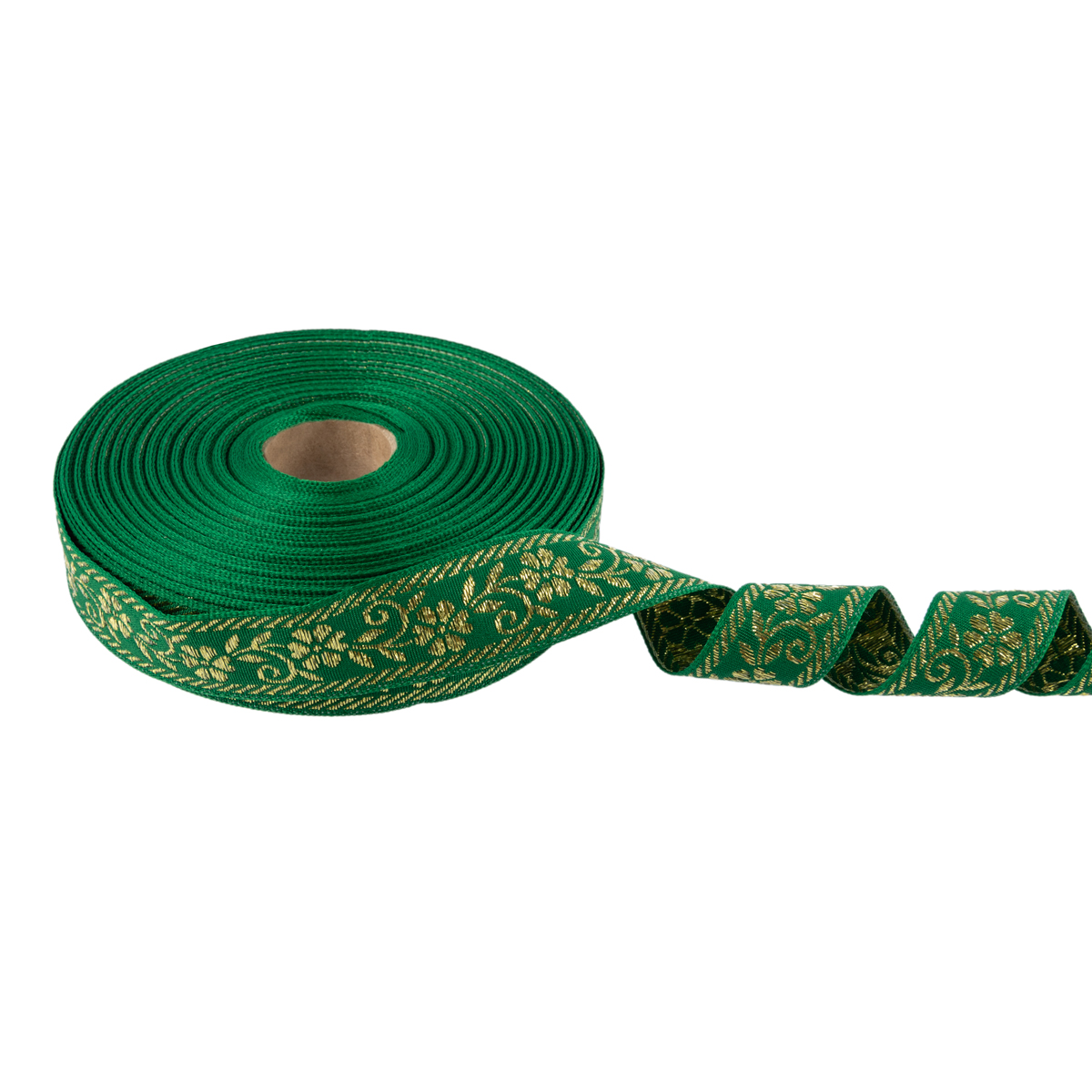 Лента (тесьма) жаккардовая 23.0-25.0 мм, / 25 метров, зеленый /под золото, Blitz