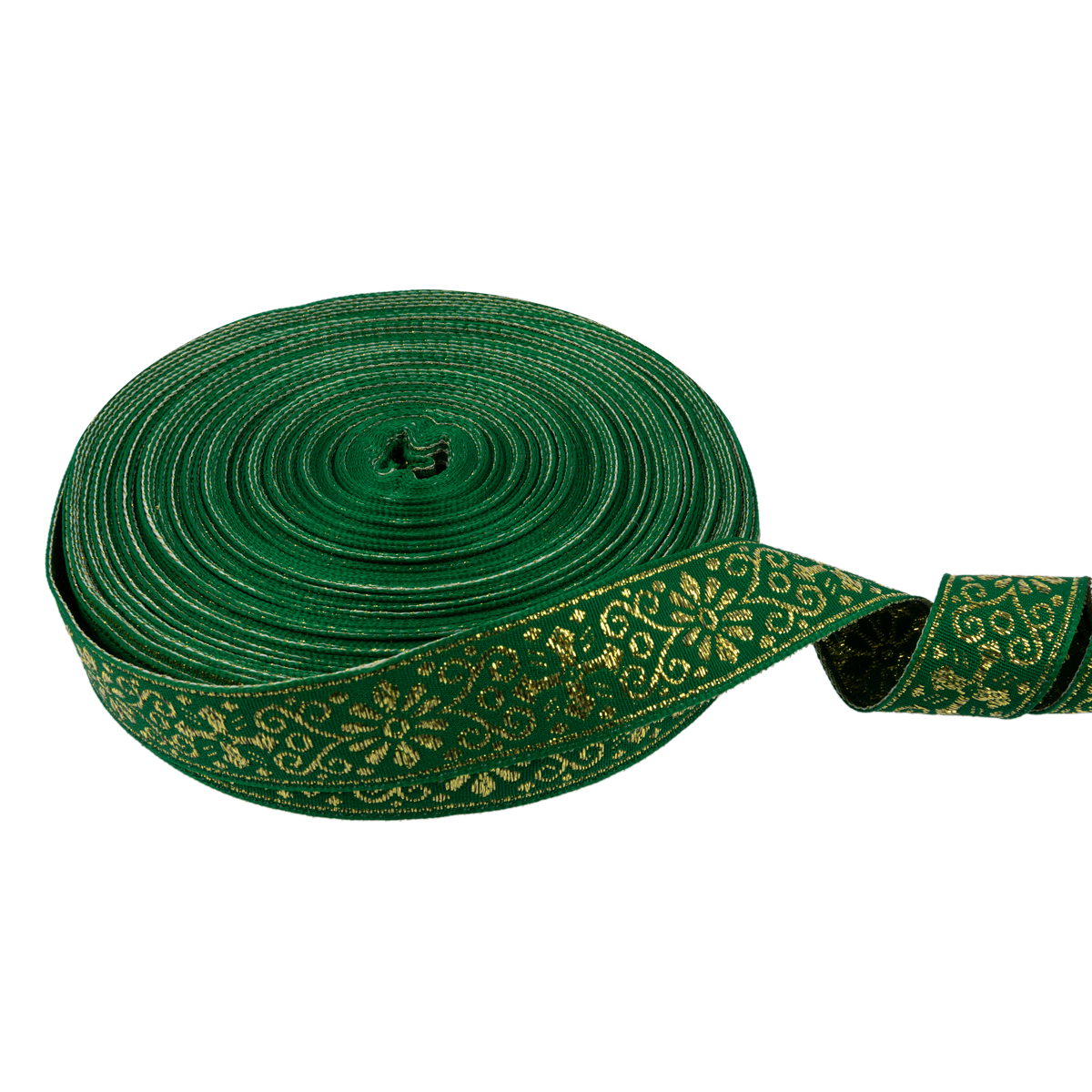 Лента (тесьма) жаккардовая 23.0-25.0 мм / 25 метров, зеленый/под золото, Blitz