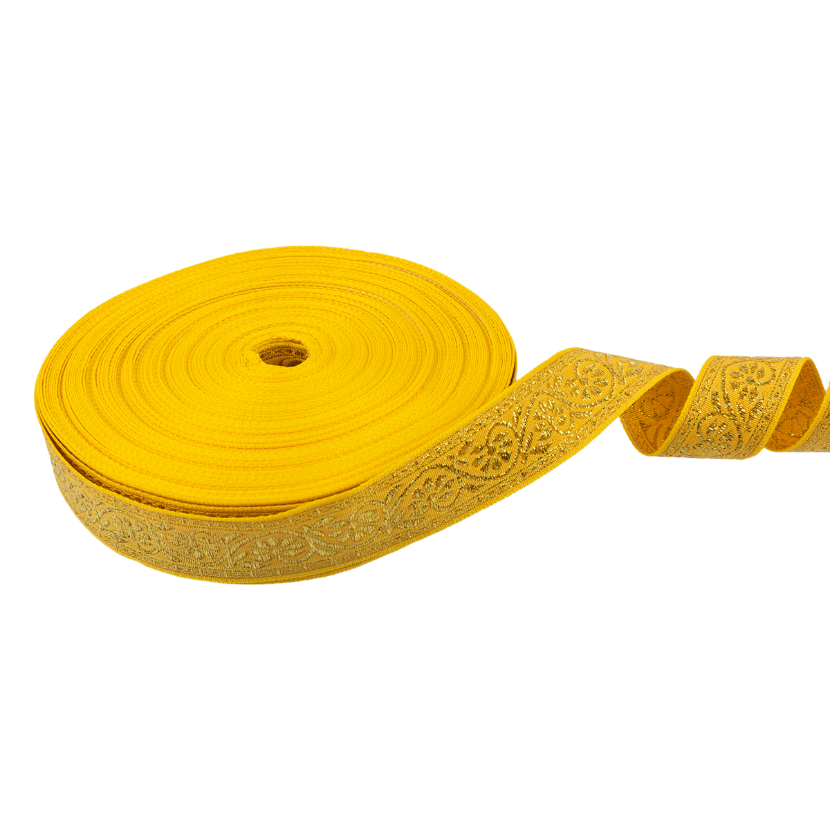 Лента (тесьма) жаккардовая 23.0-25.0 мм / 25 метров, желтый /под золото, Blitz