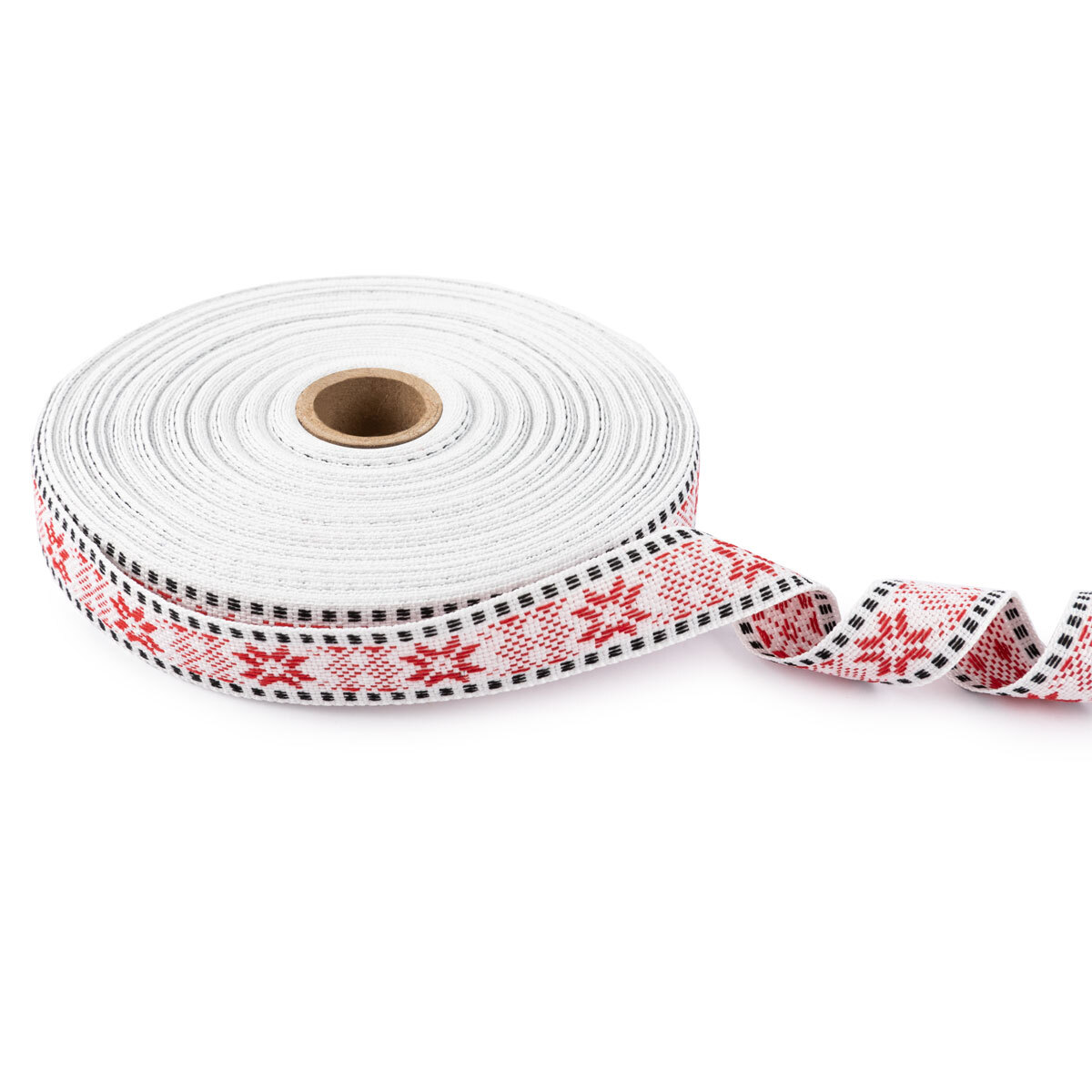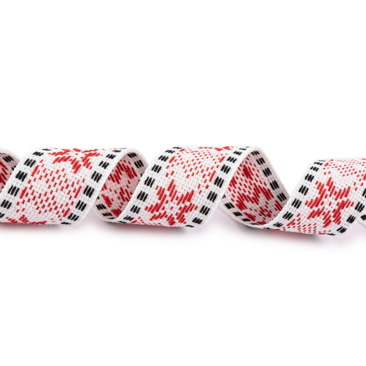 Лента (тесьма) жаккардовая 24.0 мм / 25±1 метров, Орнамент для северных народов, рис 9875 №3 бел/красн/черный, Gamma C3885