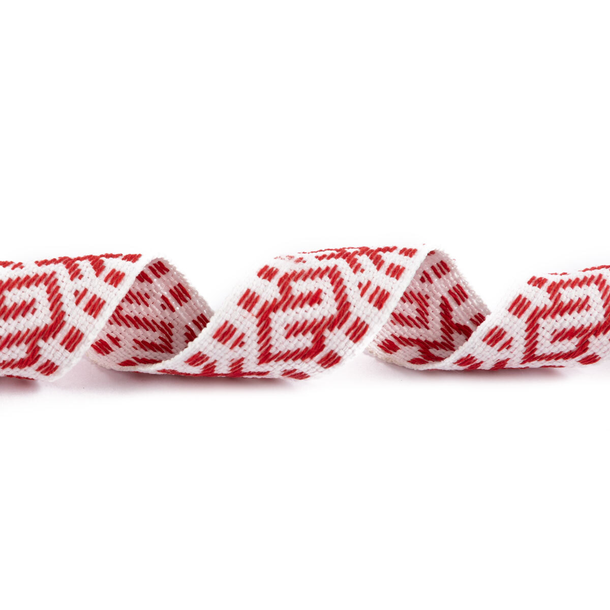 Лента (тесьма) жаккардовая 24.0 мм / 25±1 метров, Орнамент для северных народов, рис 9876 №1 бел/красный, Gamma C3885