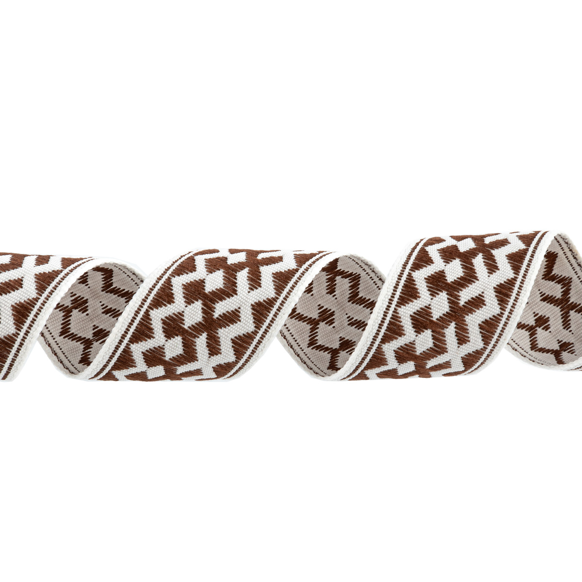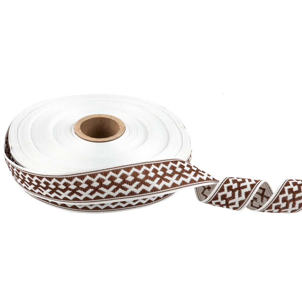 Лента (тесьма) жаккардовая 24.0 мм / 25 метров, Орнамент для северных народов, рис 7527 белый/коричневый (№6), Gamma С3772