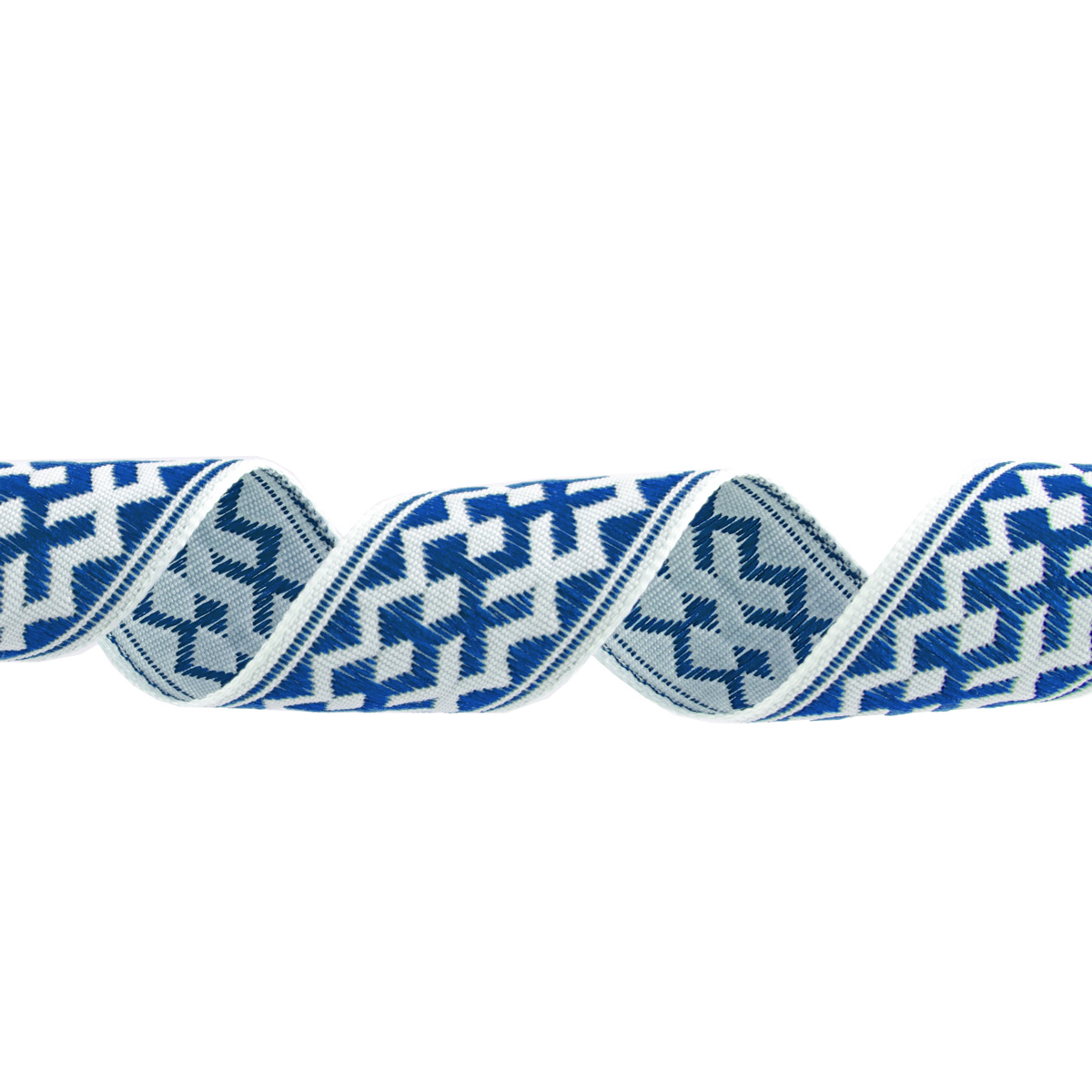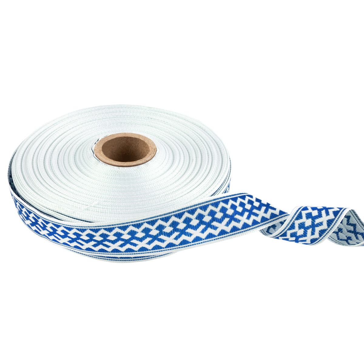 Лента (тесьма) жаккардовая 24.0 мм / 25 метров, Орнамент для северных народов, рис 7527 белый/синий (№3), Gamma С3772