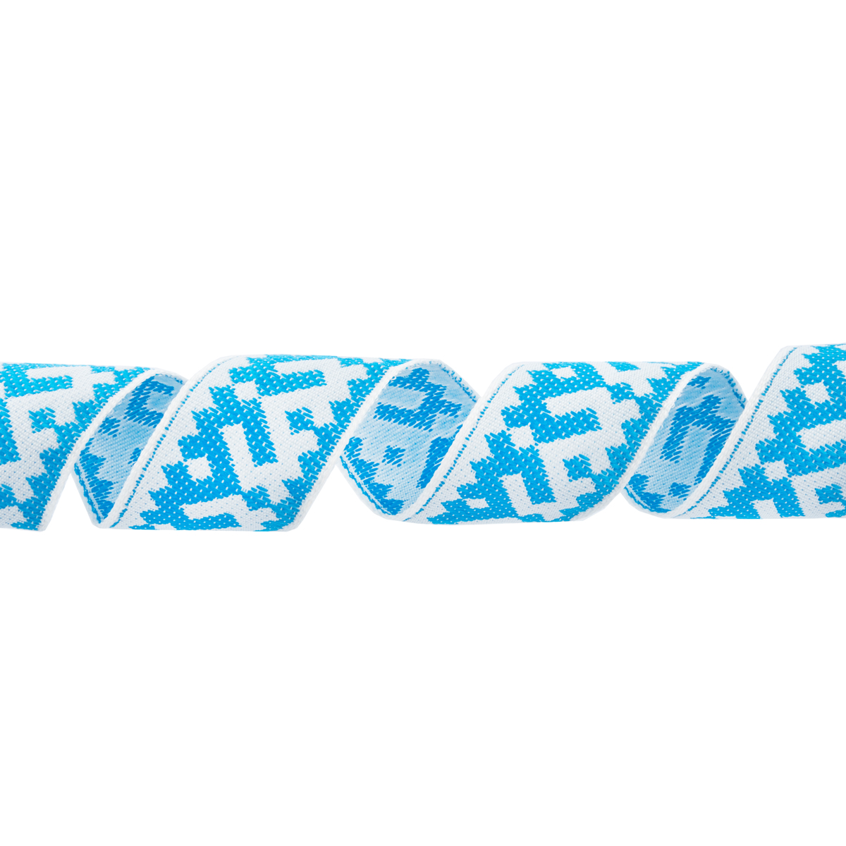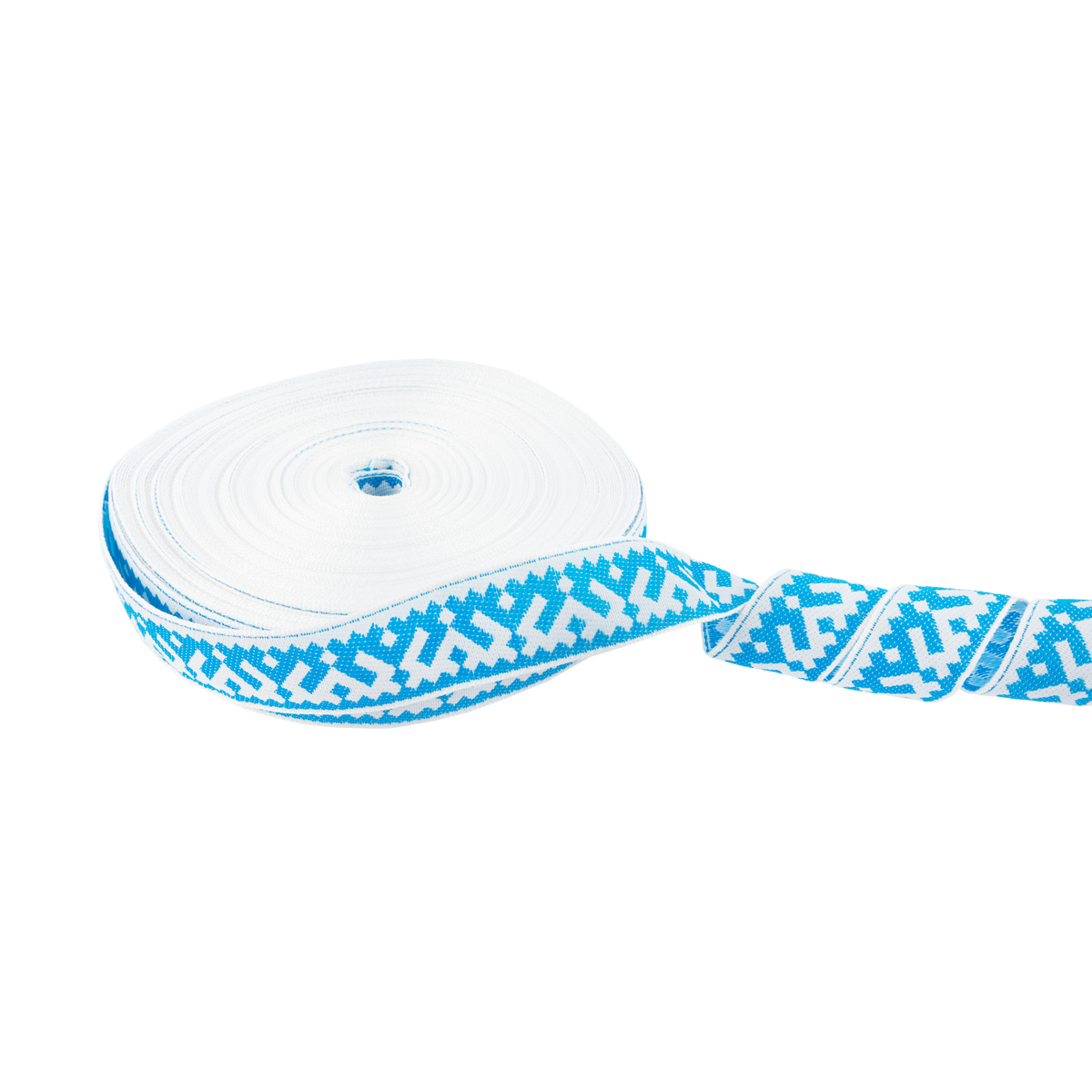 Лента (тесьма) жаккардовая 24.0 мм / 25 метров, Орнамент для северных народов, рис 9674 белый/бирюзовый, Gamma С3772