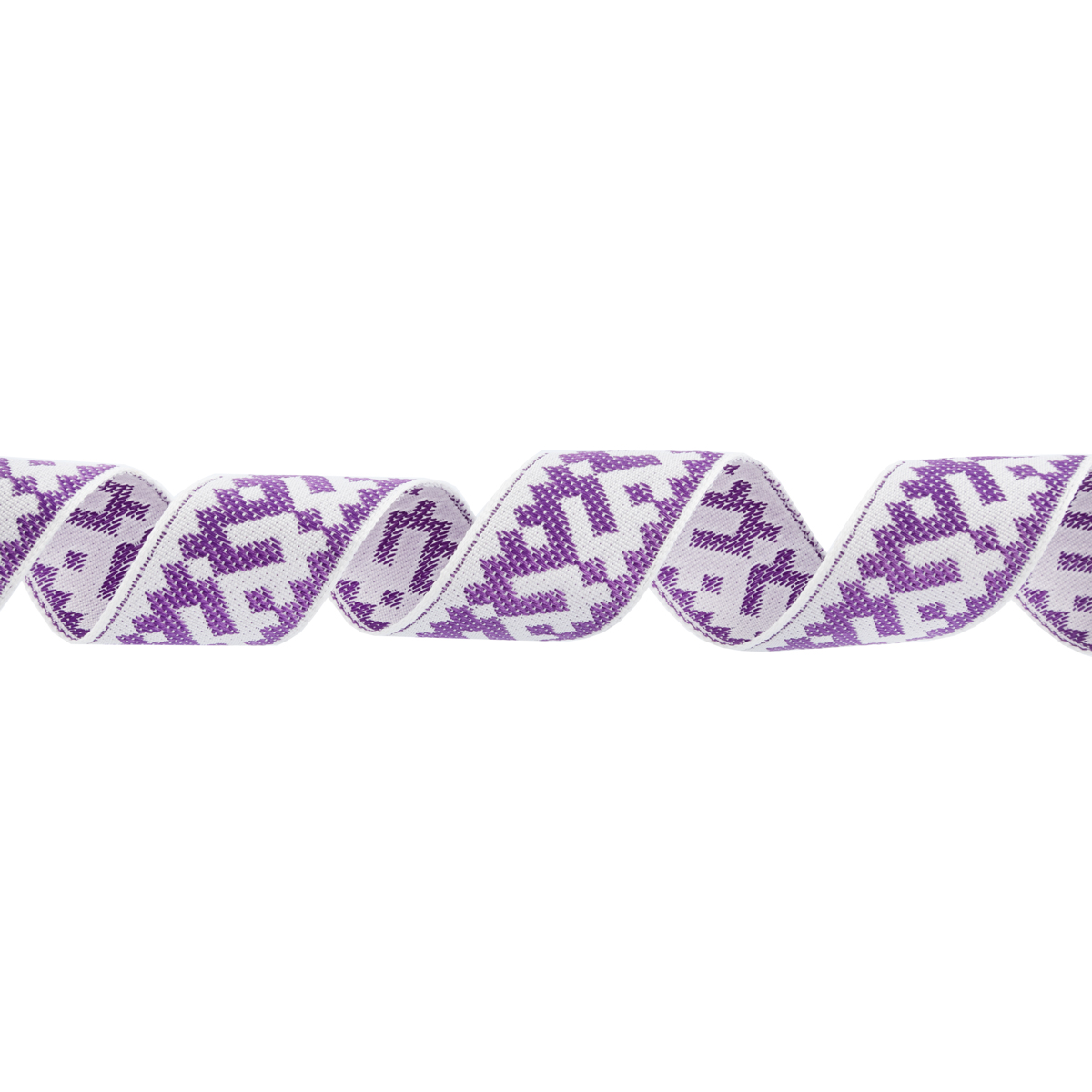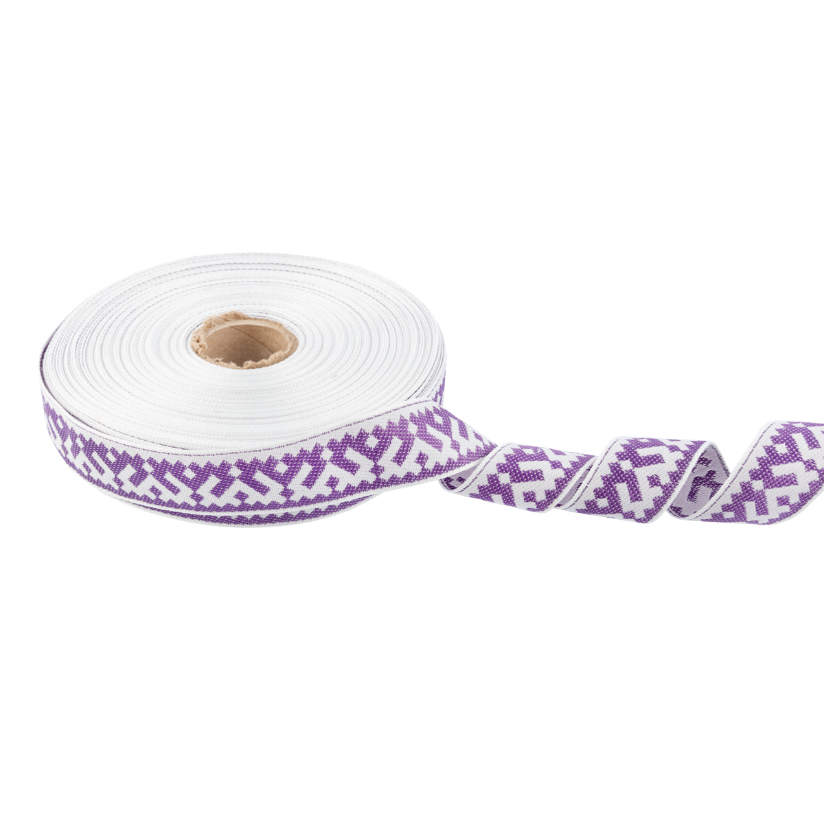 Лента (тесьма) жаккардовая 24.0 мм / 25 метров, Орнамент для северных народов, рис 9674 белый/фиолетовый, Gamma С3772