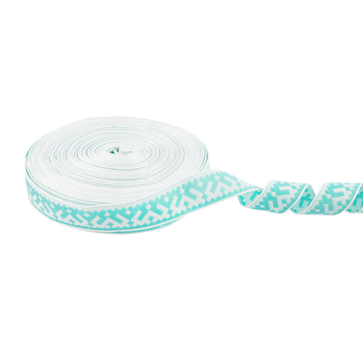 Лента (тесьма) жаккардовая 24.0 мм / 25 метров, Орнамент для северных народов, рис 9674 белый/тополевый, Gamma С3772