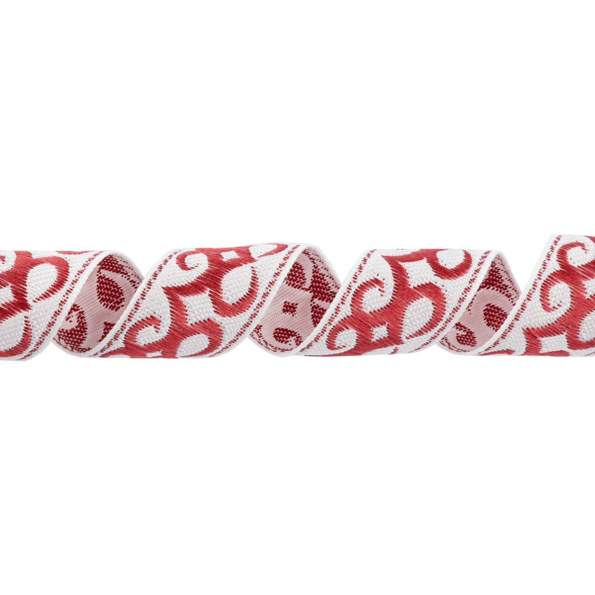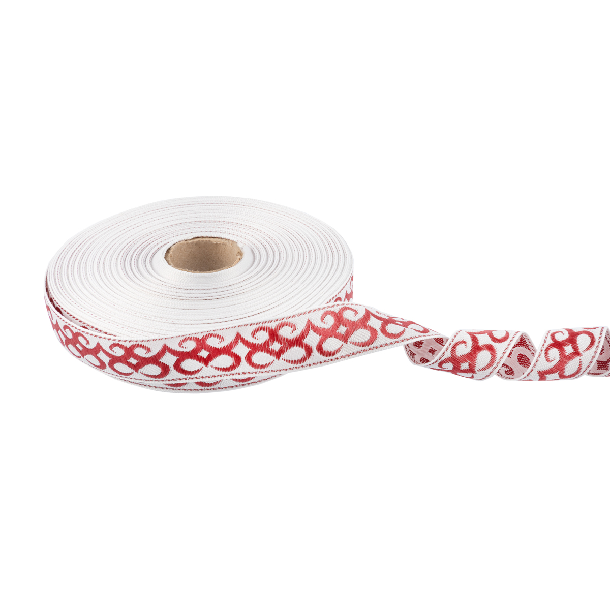 Лента (тесьма) жаккардовая 24.0 мм / 25 метров, Орнамент для северных народов, рис 9787 белый/бордо (№5), Gamma С3772