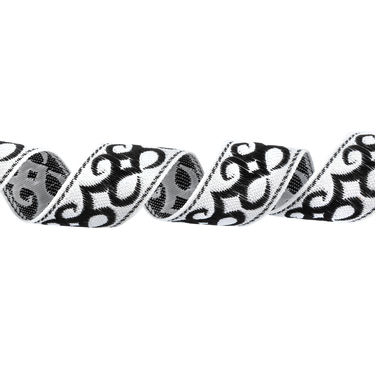 Лента (тесьма) жаккардовая 24.0 мм / 25 метров, Орнамент для северных народов, рис 9787 белый/черный (№4), Gamma С3772