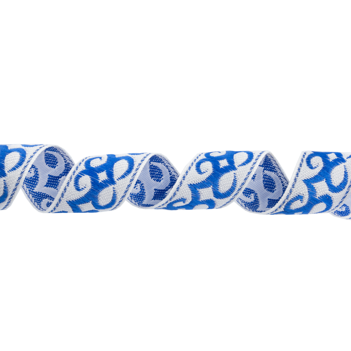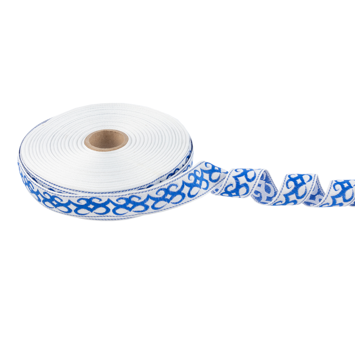 Лента (тесьма) жаккардовая 24.0 мм / 25 метров, Орнамент для северных народов, рис 9787 белый/синий (№3), Gamma С3772