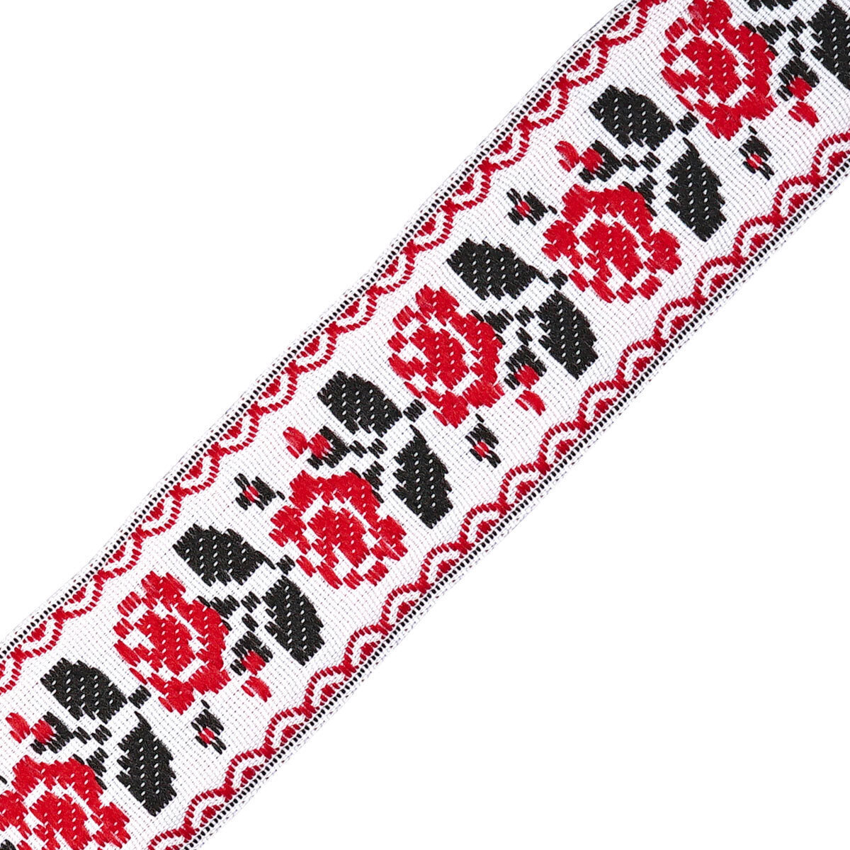 Лента (тесьма) жаккардовая 25.0 мм / 20±1 метров, белый/красный, 8А207
