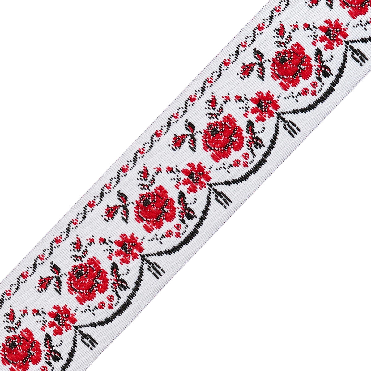 Лента (тесьма) жаккардовая 25.0 мм / 20±1 метров, белый/красный, с19198