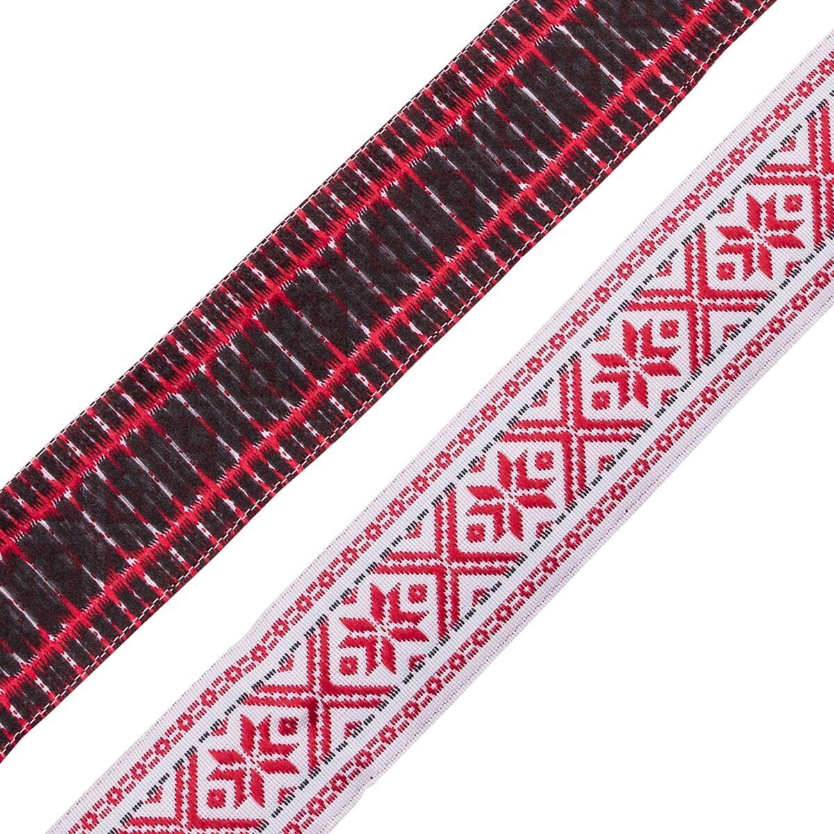 Лента (тесьма) жаккардовая 25.0 мм / 20±1 метров, белый/красный, с19219