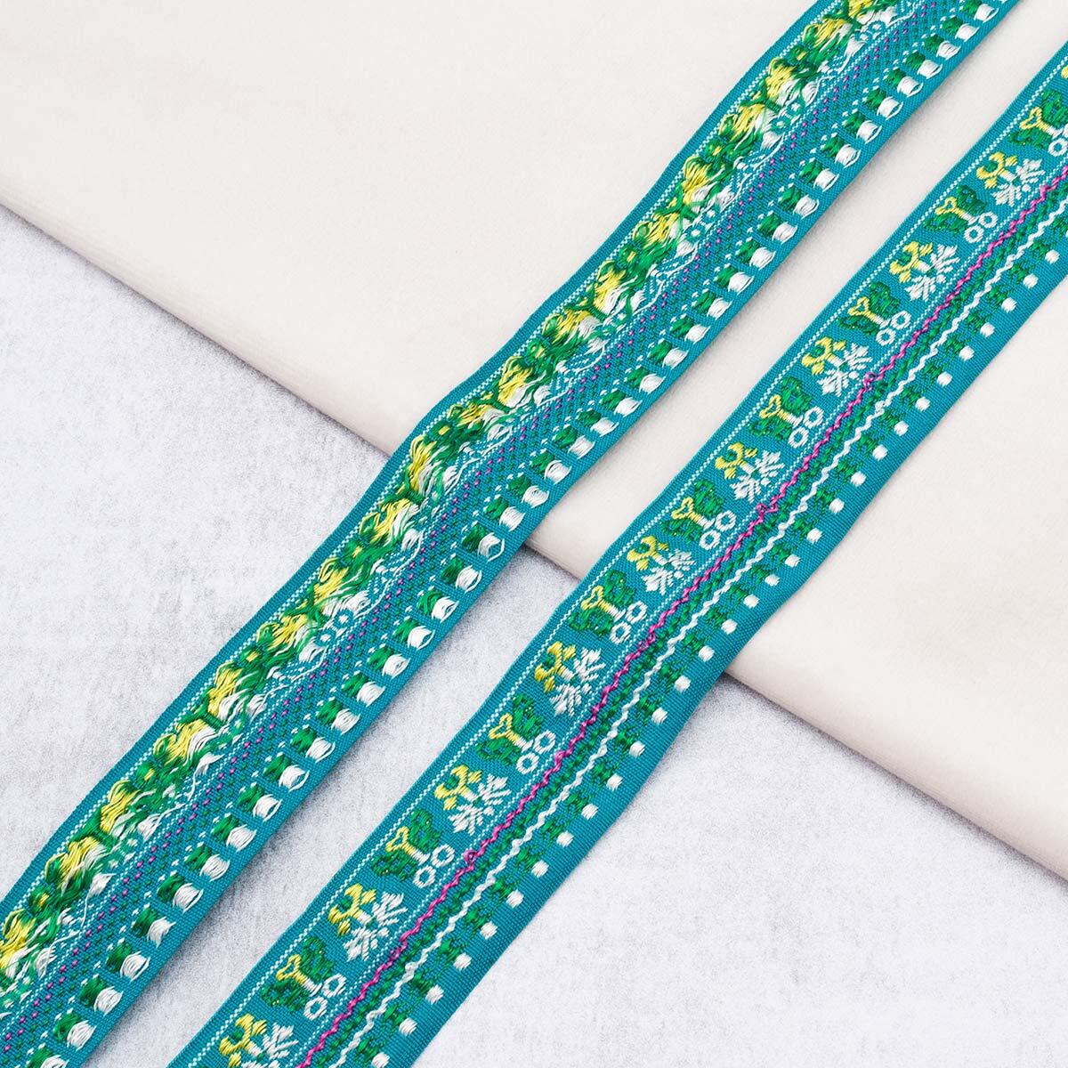 Лента (тесьма) жаккардовая 28.0 мм / 10±0.5 метров, бирюза/белый, 2068