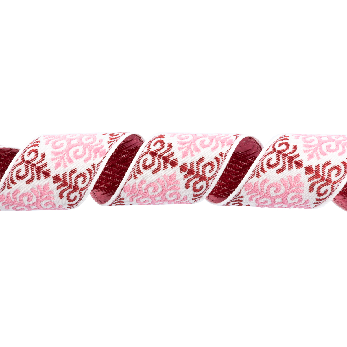 Лента (тесьма) жаккардовая 32.0 мм / 25 метров, Орнамент для северных народов, рис 9788 белый-бордовый-розовый, Gamma С3774