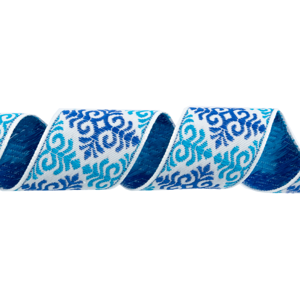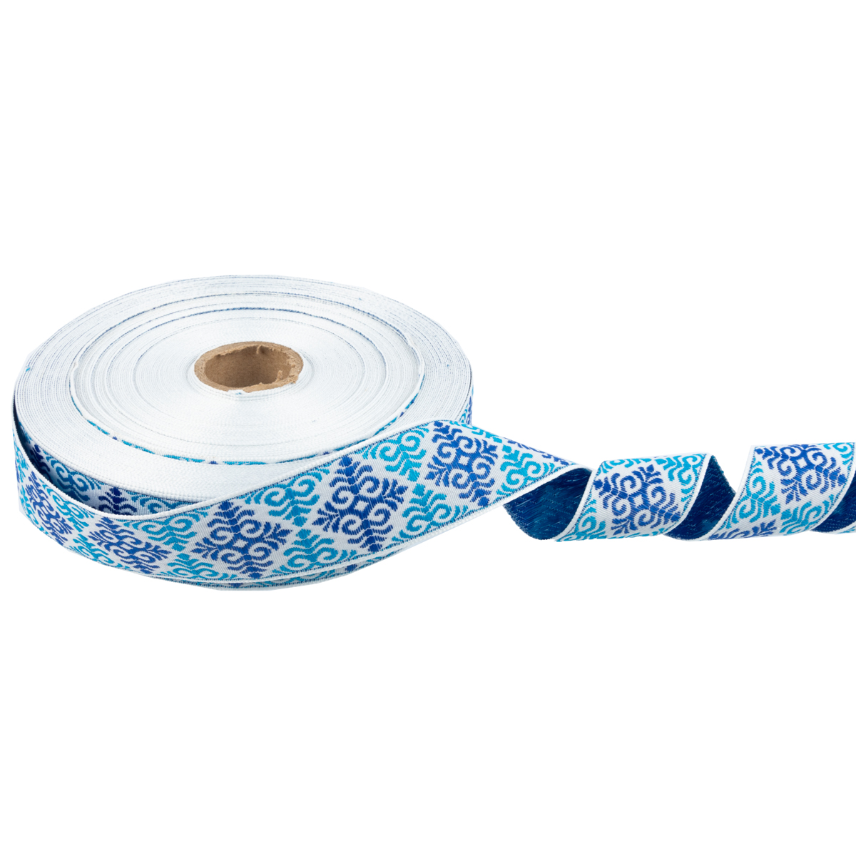 Лента (тесьма) жаккардовая 32.0 мм / 25 метров, Орнамент для северных народов, рис 9788 белый-синий-бирюзовый, Gamma С3774