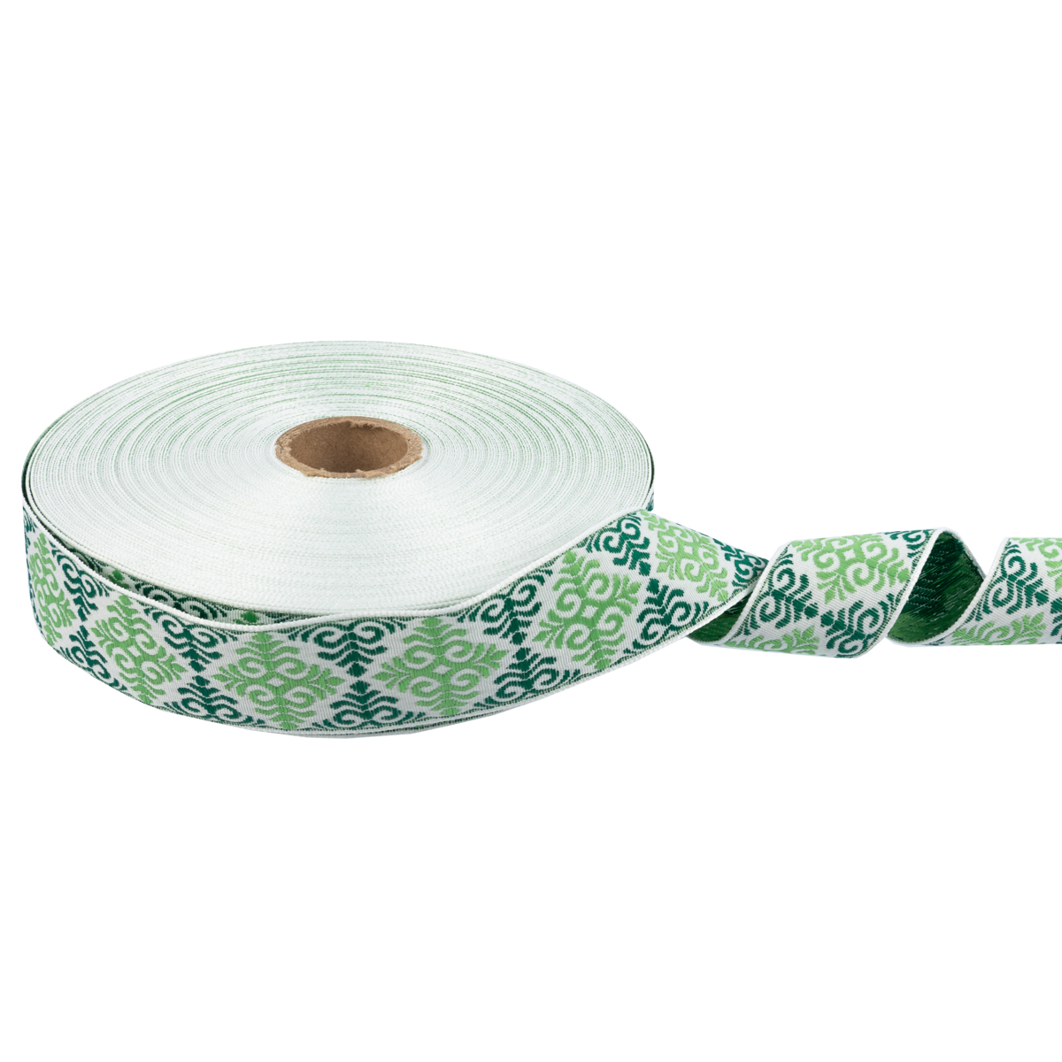 Лента (тесьма) жаккардовая 32.0 мм / 25 метров, Орнамент для северных народов, рис 9788 белый-т.зеленый-салатовый, Gamma С3774