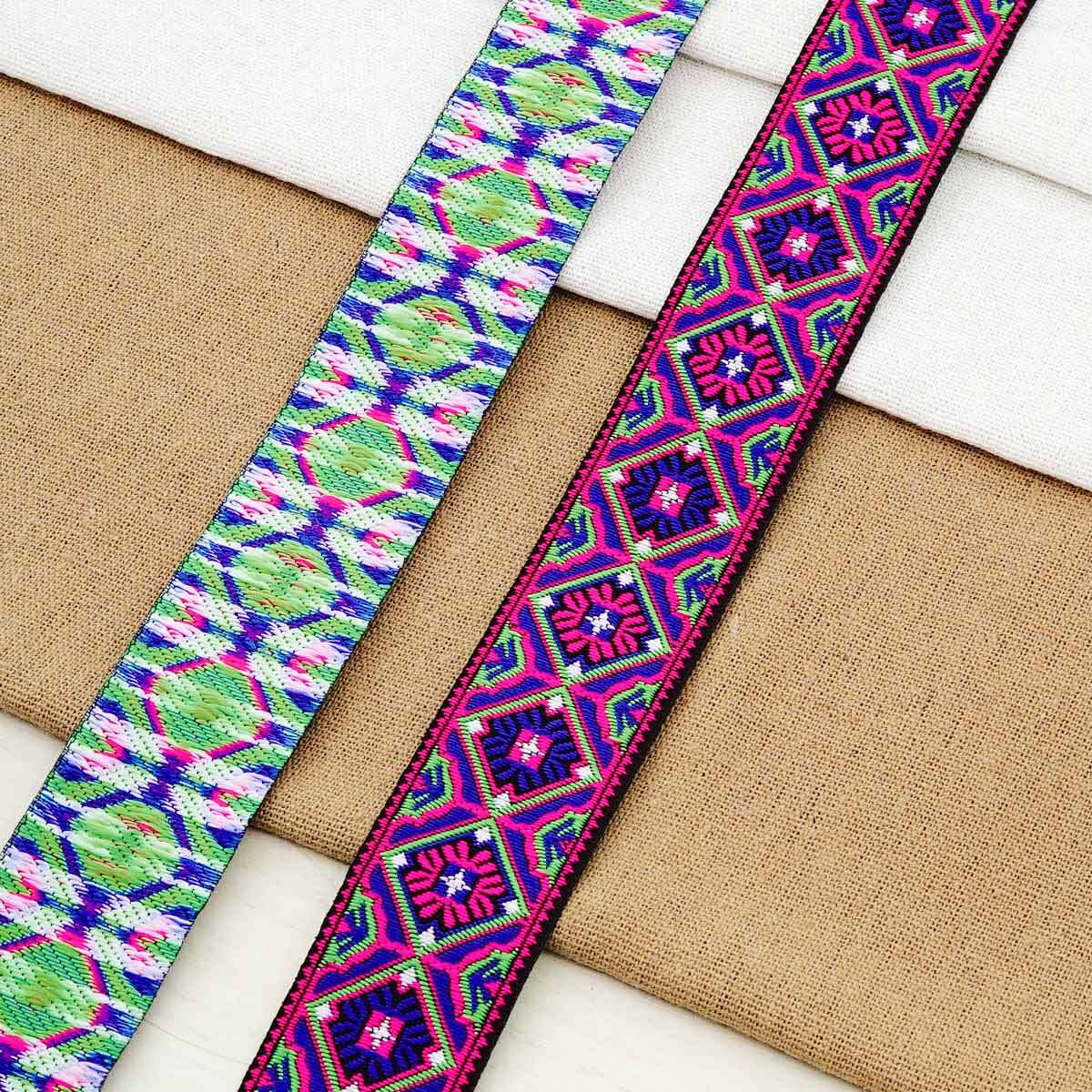 Лента (тесьма) жаккардовая 33.0 мм / 7 метров, малиновый/салатовый/синий, 11892