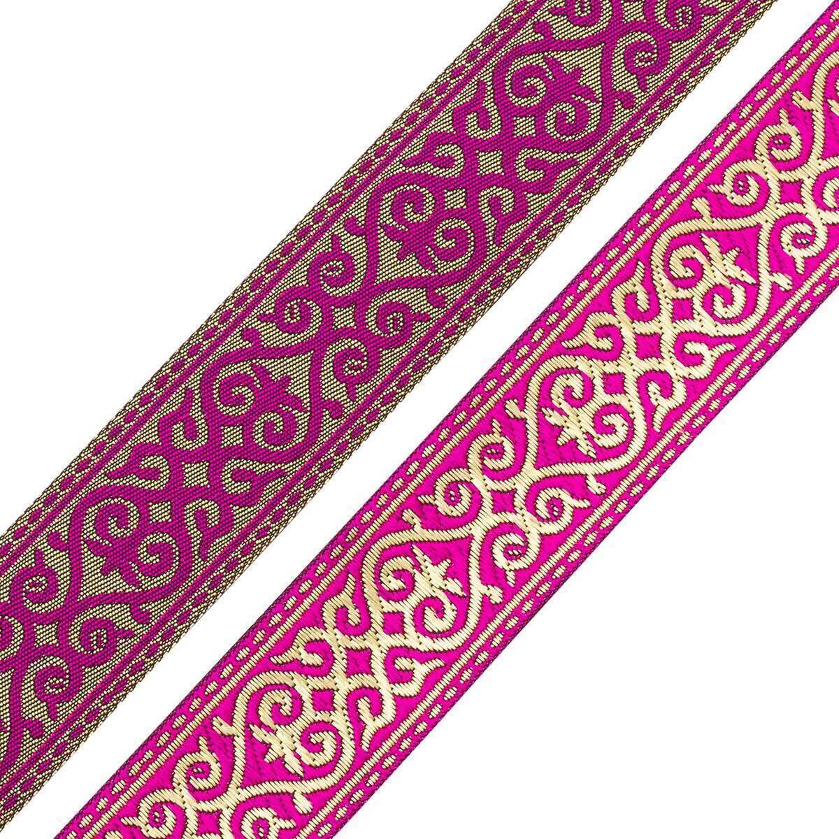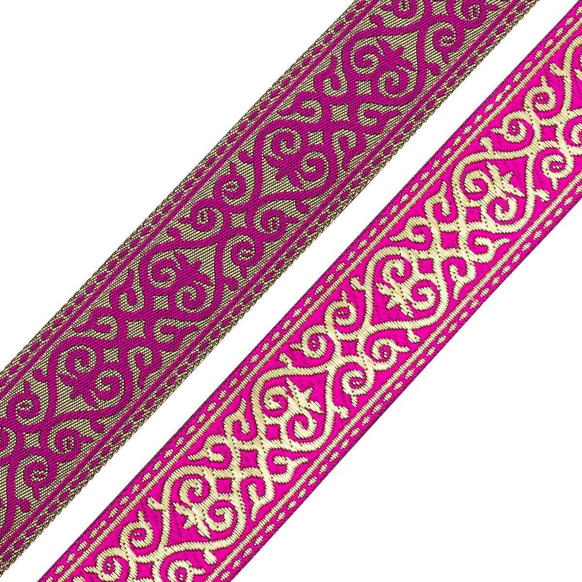 Лента (тесьма) жаккардовая 33.0 мм / 7.32 метра, цикламен, 7222