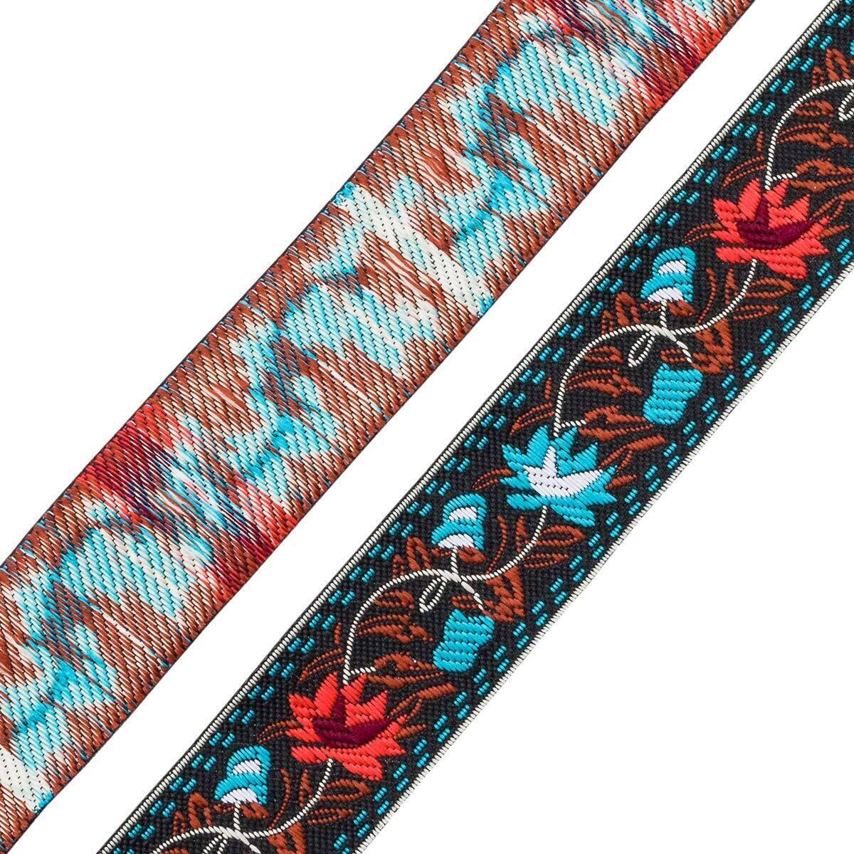 Лента (тесьма) жаккардовая 33.0 мм / 7 метров, алые/голубые цветы, 11820