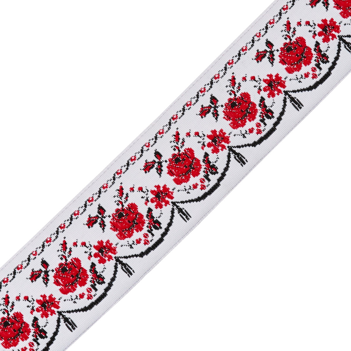 Лента (тесьма) жаккардовая 33.0 мм / 7 метров, белый/красный, 11822
