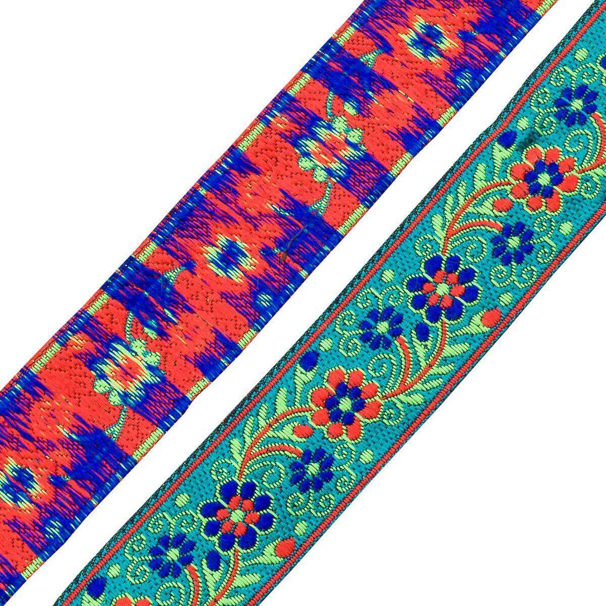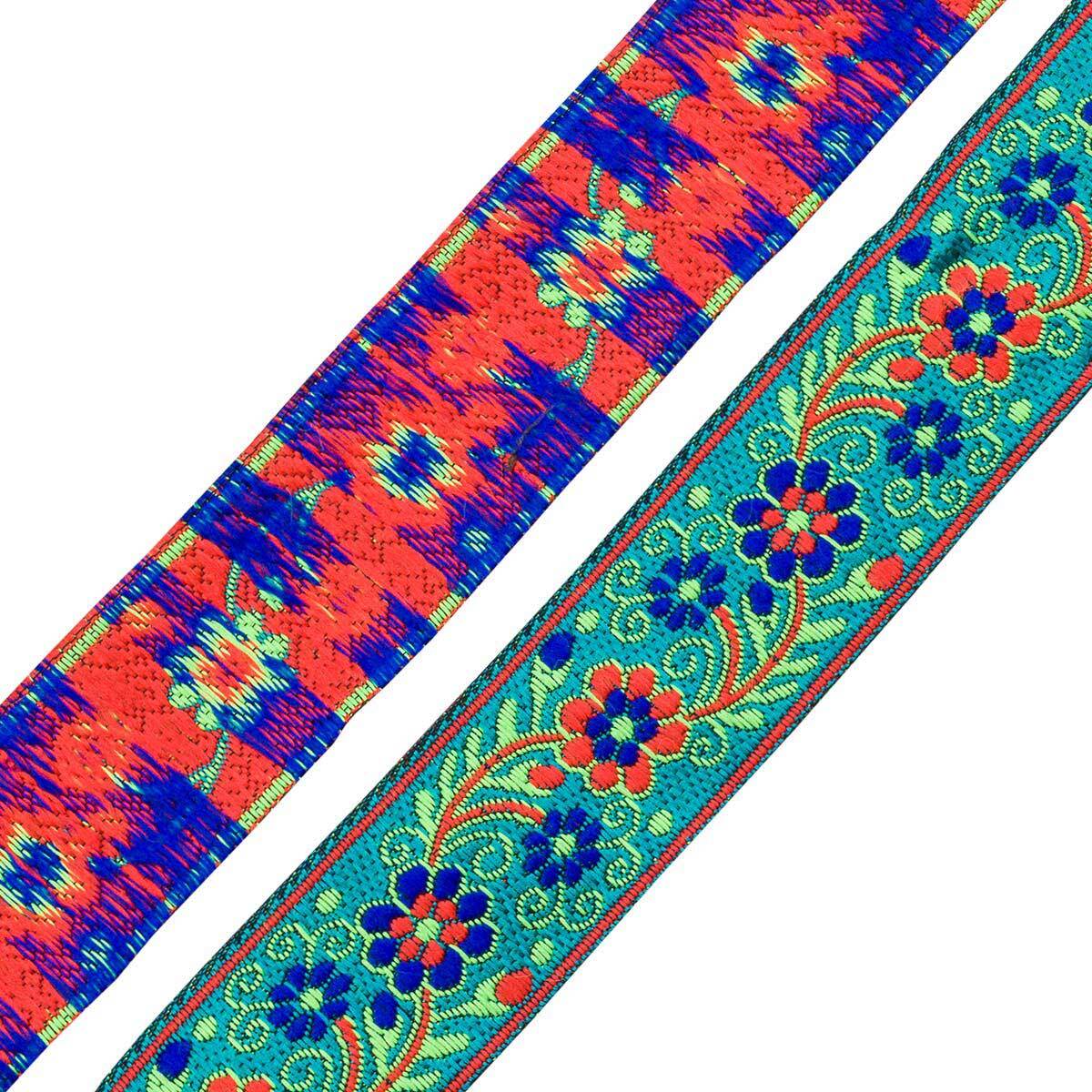 Лента (тесьма) жаккардовая 33.0 мм / 7 метров, бирюза с цветами, 11823