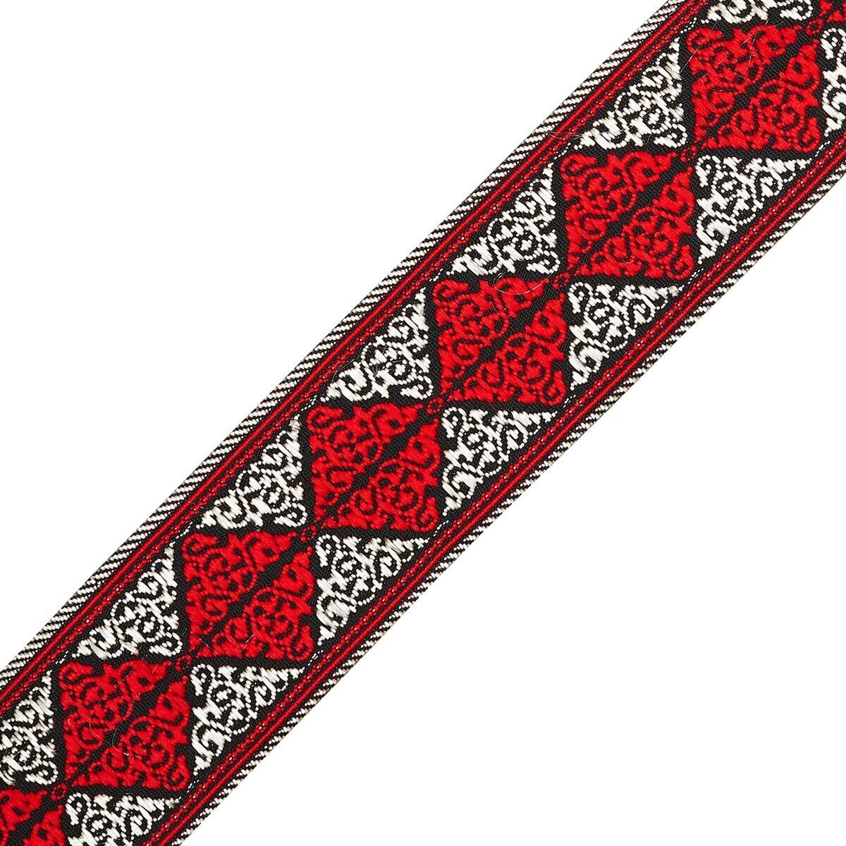 Лента (тесьма) жаккардовая 33.0 мм / 7 метров, красный/серебро, (11824)