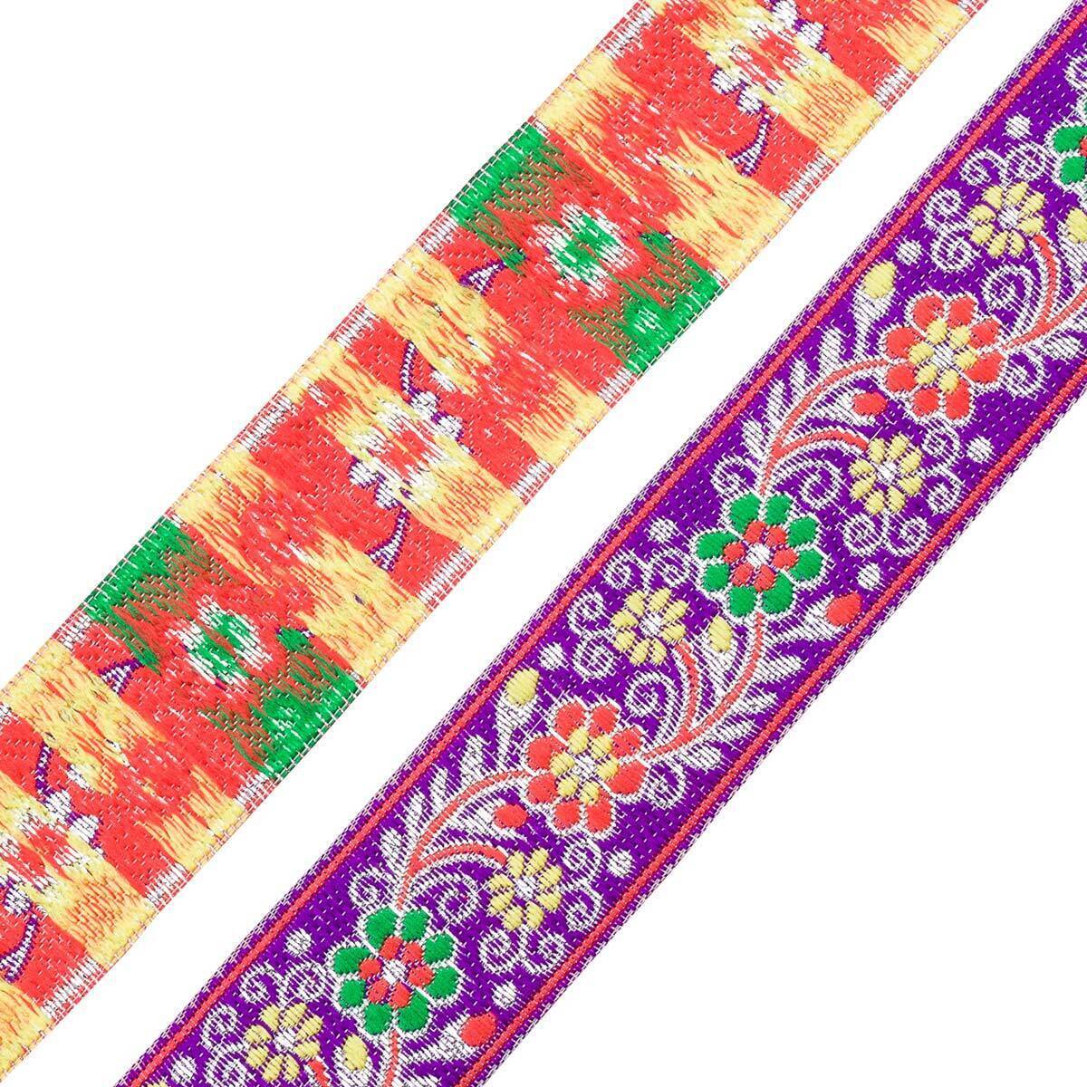 Лента (тесьма) жаккардовая 33.0 мм / 7 метров, сирень с цветами, 11823