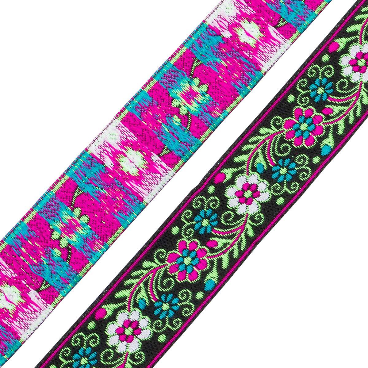 Лента (тесьма) жаккардовая 33.0 мм / 7 метров, зеленый с цветами, 11823