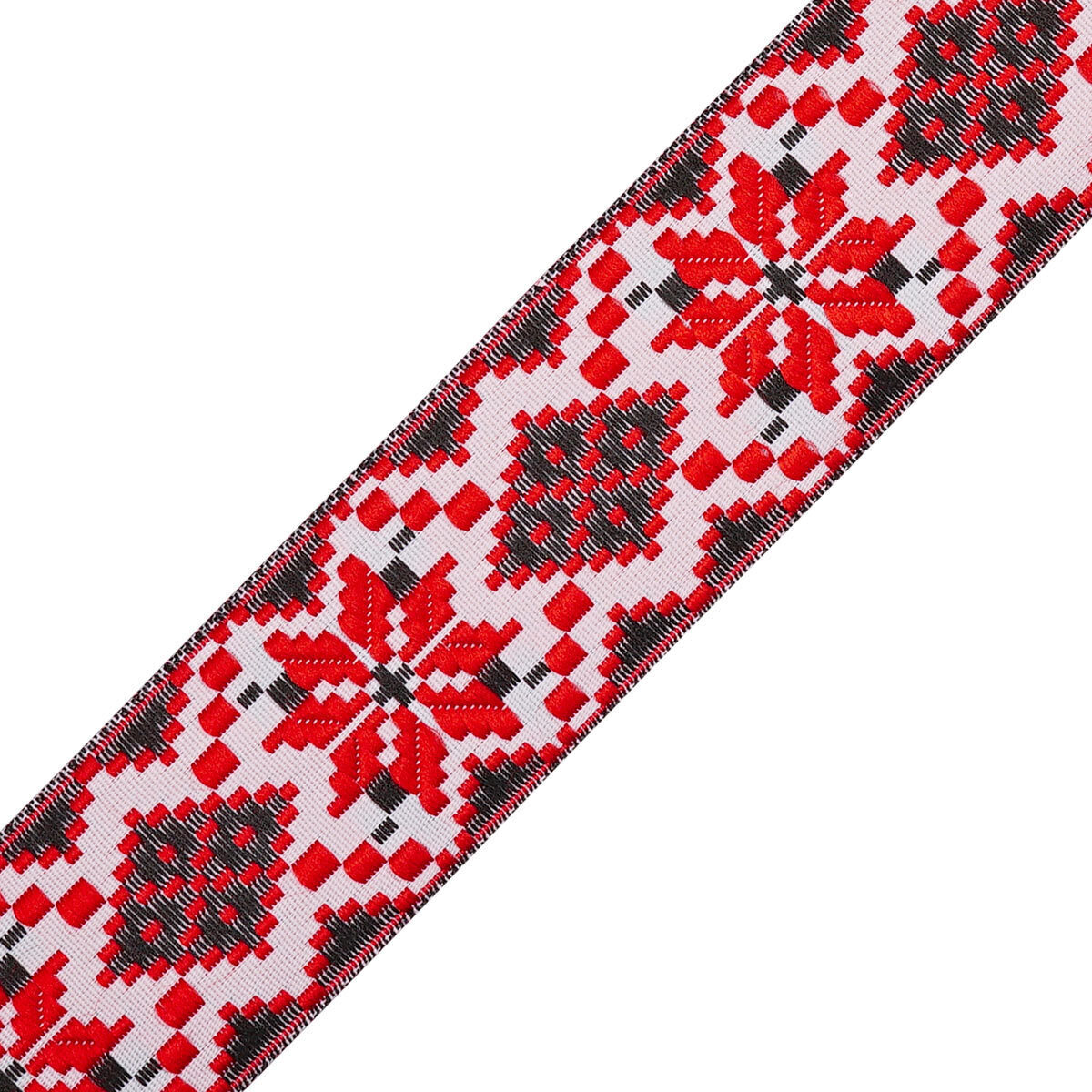Лента (тесьма) жаккардовая 35.0 мм / 18.29±1 метров, белый, красный, с06418