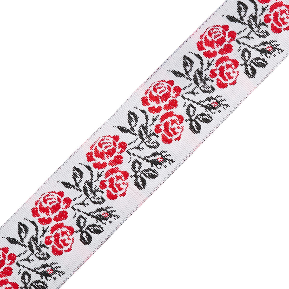 Лента (тесьма) жаккардовая 35.0 мм / 9,14 метров, белый, красный, c19592