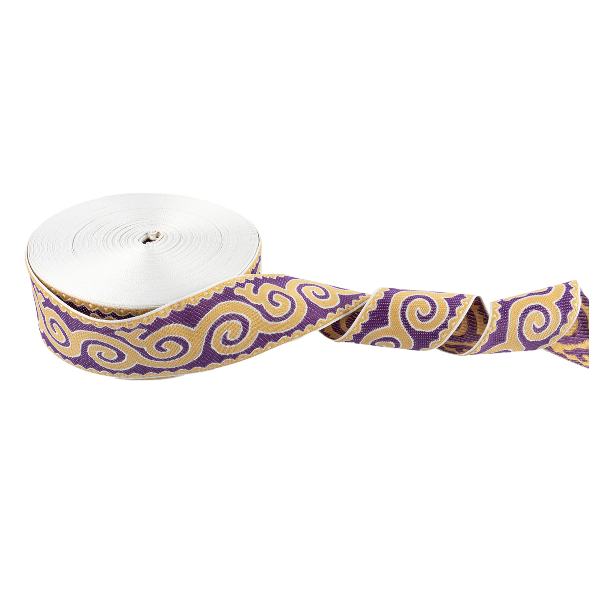 Лента (тесьма) жаккардовая 50.0 мм / 25 метров, Орнамент для северных народов, рис 9605 белый/бежевый/фиолетовый, Gamma С3775