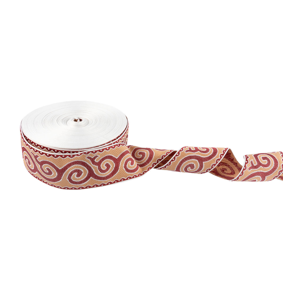 Лента (тесьма) жаккардовая 50.0 мм / 25 метров, Орнамент для северных народов, рис 9605 белый/бордовый/ч.роза, Gamma С3775