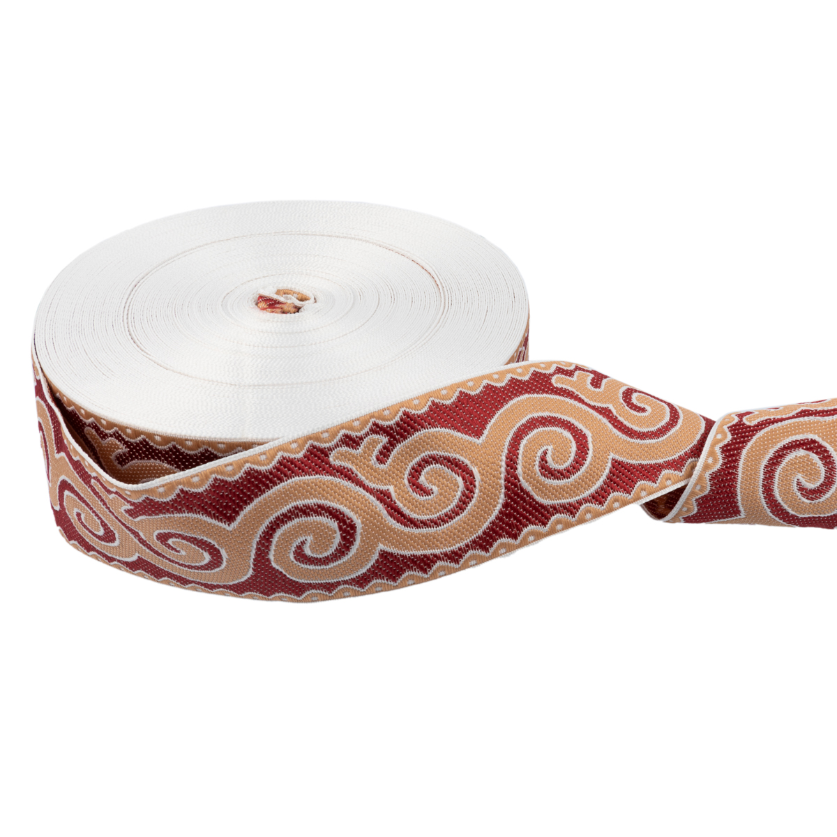 Лента (тесьма) жаккардовая 50.0 мм, / 25 метров, Орнамент для северных народов, рис 9605 белый/ч.роза/бордовый, Gamma С3775