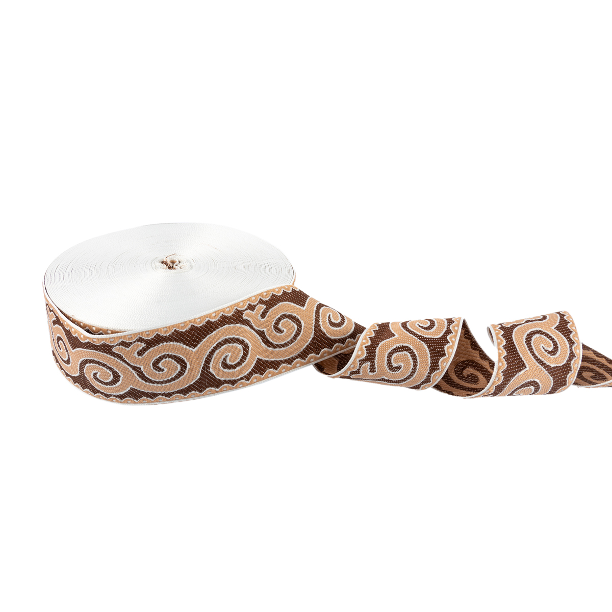 Лента (тесьма) жаккардовая 50.0 мм, / 25 метров, Орнамент для северных народов, рис 9605 белый/ч.роза/коричневый, Gamma С3775