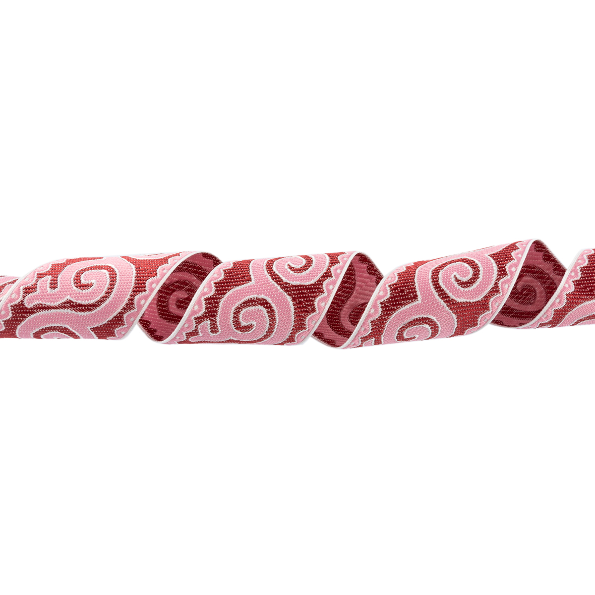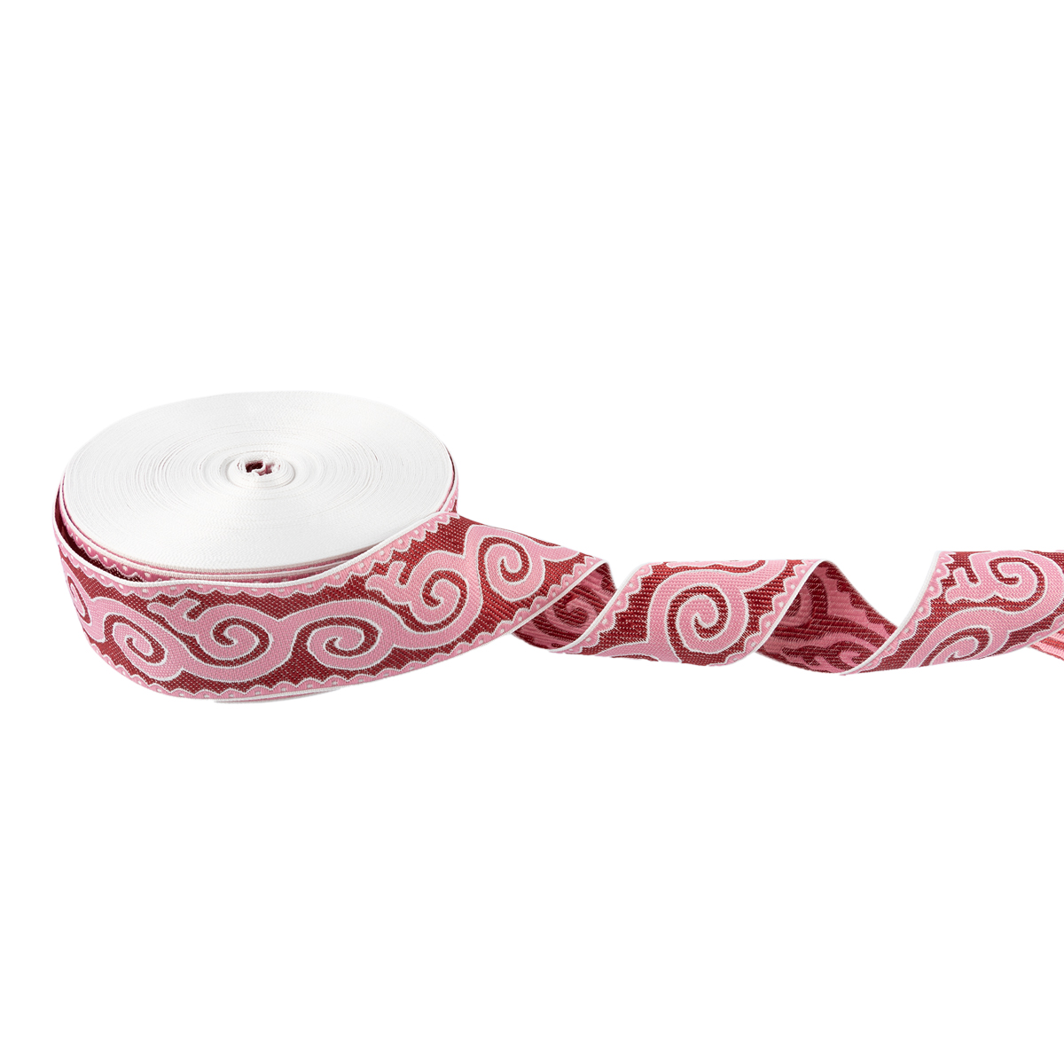 Лента (тесьма) жаккардовая 50.0 мм, / 25 метров, Орнамент для северных народов, рис 9605 белый/розовый/бордовый, Gamma С3775