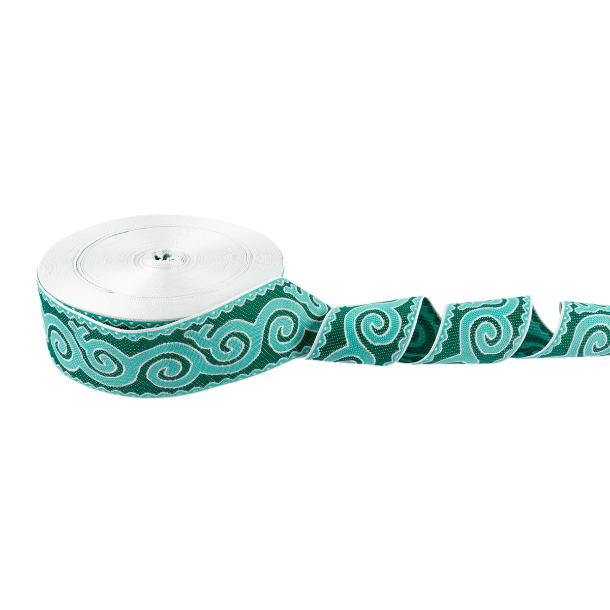 Лента (тесьма) жаккардовая 50.0 мм, / 25 метров, Орнамент для северных народов, рис 9605 белый/тополевый/зеленый, Gamma С3775