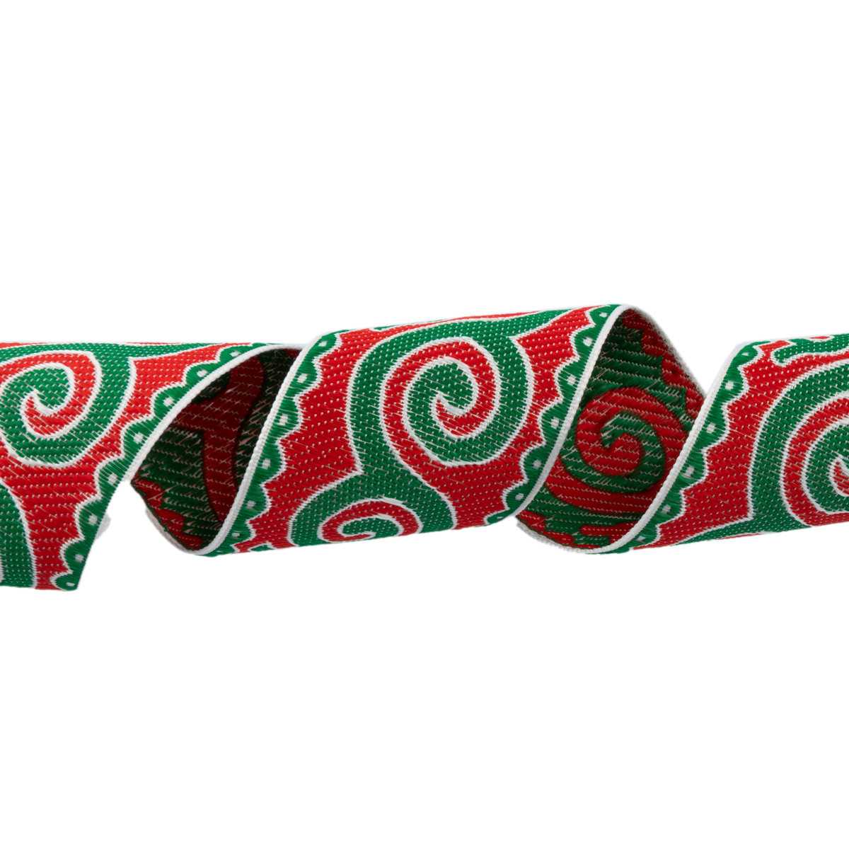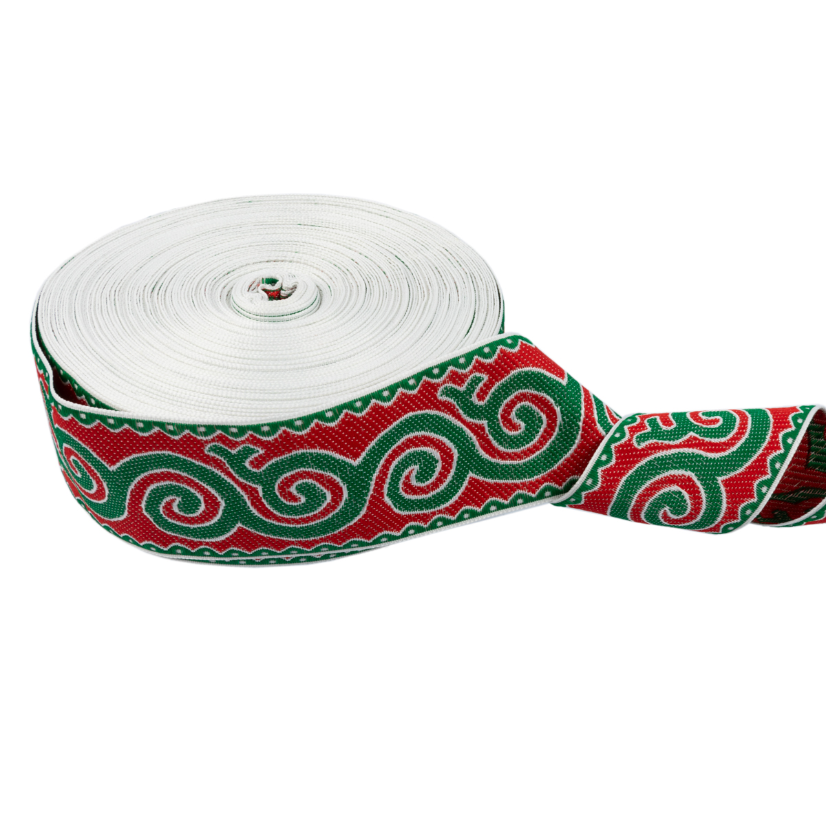 Лента (тесьма) жаккардовая 50.0 мм / 25 метров, Орнамент для северных народов, рис 9605 белый/зеленый/красный, Gamma С3775