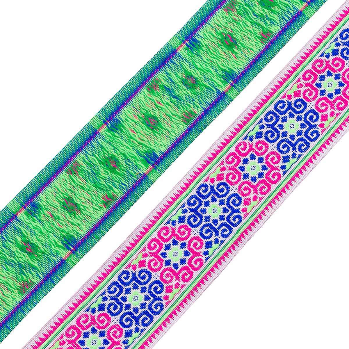 Лента (тесьма) жаккардовая 50.0 мм / 7 метров, розовый/синий, 2182